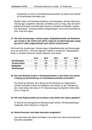 Drucksache 19/1756 Schleswig-Holsteinischer Landtag - 19. Wahlperiode beanstandet, so wird nur eine Beanstandung erfasst, die jedoch eine Vielzahl an Einzelmängeln beinhalten kann. Bewährt haben sich Schwerpunktaktionen und Kampagnen. Wurden diese bran- chenbezogen ausgeführt, hatte dies unmittelbar auch zur Folge, dass sich die Ar- beitsschutzsituation innerhalb dieser Branche verbessert hat (Beispiel: Leitbran- che Versorgung - Schwerpunktaktion Biogasanlagen). Ob und wie nachhaltig sie sind, muss sich zeigen. 37. Wie viele Anordnungen, Verwarnungen, Bußgeldbescheide und Strafanzei- gen wurden in den letzten fünf Jahren aufgrund von Besichtigungen ausge- sprochen? (bitte aufgeschlüsselt nach Jahren und Branchen) Die Anzahl der Anordnungen, Verwarnungen, Bußgeldbescheide und Strafanzeigen ist für die Jahre 2014 – 2018 der folgenden Tabelle zu entnehmen. Diesbezügliche Daten zu einzelnen Branchen werden statistisch nicht erfasst: 2014 2015 2016 2017 2018 Anordnungen 71 78 59 51 34 Verwarnungen 343 268 254 191 181 Bußgelder 67 33 31 57 25 Strafanzeigen 0 0 0 4 2 38. Wie viele Betriebe wurden in Schleswig-Holstein in den letzten fünf Jahren in Bezug auf die Einhaltung von Arbeitszeitvorschriften kontrolliert? Die Anzahl der Betriebe, die in Bezug auf die Einhaltung von Arbeitszeitvor- schriften kontrolliert wurden wird statistisch nicht erfasst. Zu der Thematik wur- den in den letzten fünf Jahren 2.131 Überwachungen durchgeführt. Siehe Über- sicht zu Frage 38. 39. Wie viele Regelverstöße hat es hierbei in den letzten fünf Jahren gegeben? Im Rahmen der durchgeführten Überwachungen wurden 150 Beanstandungen festgestellt. Siehe Übersicht zu Frage 39. 40. Welche Branchen sind dabei besonders aufgefallen? Laut Information der StAUK sind dabei in den letzten fünf Jahren keine Branchen besonders aufgefallen.