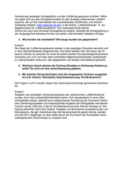 Adresse des jeweiligen Antragstellers und der Luftfahrzeugsteuerer erhoben. Nähe- res ergibt sich aus den Antragsformularen für den Aufstieg unbemannter Luftfahrt- systeme, die auf der Internetseite des Landesbetriebs Straßenbau und Verkehr Schleswig-Holstein (http://www.lbv-sh.de/) in der Rubrik „Luftfahrtbehörde“ „An- tragsformulare für Luftfahrzeugführer“ zum Download bereit stehen. Vorher war auch eine formlose Antragstellung möglich, weshalb die Antragstellung in der Vergangenheit teilweise formlos und daher unterschiedlich detailliert erfolgte. 3. Wie wurden sie verarbeitet? Wie lange wurden sie gespeichert? Antwort: Die Daten der Luftfahrzeugsteuerer werden in der jeweiligen Erlaubnis vermerkt und in eine Übersichtstabelle aufgenommen. Die Daten bleiben über die Dauer der Er- laubnis (hierbei ist zwischen für einen Einzelfall erteilten Einzelaufstiegserlaubnissen einerseits und i.d.R. auf zwei Jahre befristeten Allgemeinerlaubnissen andererseits zu unterscheiden) hinaus ein Jahr gespeichert und werden anschließend gelöscht. 4. Welchem Zweck dienten die Drohnen-Einsätze in Schleswig-Holstein je- weils? Es wird um eine Aufschlüsselung gebeten. 5. Mit welchen Sensortechniken sind die eingesetzten Drohnen ausgestat- tet (z.B. Infrarot, Wärmebild, Gesichtserkennung, WLAN-Scanner)? Die Fragen 4 und 5 werden wegen des Sachzusammenhangs gemeinsam beantwor- tet. Antwort: Angaben zum jeweiligen Verwendungszweck der unbemannten Luftfahrtsysteme wurden durch die Landesluftfahrtbehörde bisher nicht standardisiert in einer Über- sichtstabelle erfasst, weshalb eine entsprechende Darstellung die Durchsicht sämtli- cher Genehmigungsakten auf entsprechende Angaben der Antragsteller erforderlich machen würde. Dies war in der für die Beantwortung einer Kleinen Anfrage zur Ver- fügung stehenden Zeit nicht möglich. Angaben zur technischen Ausstattung der Luft- fahrtsysteme, die ggf. Aufschluss über die Sensorentechnik geben könnte, werden erst seit 2014 abgefragt, so dass selbst durch die Durchsicht der Einzelakten keine weitergehenden Erkenntnisse zu erwarten sind.