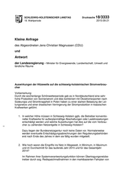 SCHLESWIG-HOLSTEINISCHER LANDTAG Drucksache 18/3333 18. Wahlperiode 2015-09-21 Kleine Anfrage des Abgeordneten Jens-Christian Magnussen (CDU) und Antwort der Landesregierung - Minister für Energiewende, Landwirtschaft, Umwelt und ländliche Räume Auswirkungen der Hitzewelle auf die schleswig-holsteinischen Stromverbrau- cher Vorbemerkung: Durch die wochenlange Schönwetterperiode gab es in Norddeutschland eine sehr hohe Produktion von Sonnenstrom und dies kombiniert mit Ökostromexporten nach Südeuropa und Stromknappheit in Polen haben zu einer starken Belastung der Lei- tungsnetze und einer drastischen Verringerung der Stromproduktion in klassischen Kraftwerken geführt. 1. In welcher Höhe müssen in Schleswig-Holstein ggfs. die Betreiber konventio- neller Kraftwerke für außerplanmäßige Abschaltungen oder Lastdrosselungen entschädigt werden und welche Auswirkungen hat dies auf die vom Verbrau- cher zu zahlenden Netzentgelte in Schleswig-Holstein? Dazu liegen der Bundesnetzagentur noch keine Daten vor. Normalerweise werden eventuelle Entschädigungsabrechnungen den Regulierungsbehörden erst nach Ende des Jahres in dem sie fällig wurden mitgeteilt. 2. Wie hoch waren die Eingriffe ins Netz in Megawatt, in Minimum, in Maximum und im Durchschnitt für das laufende Jahr 2015 und für das Gesamtjahr 2014? Im Rahmen ihrer Systemverantwortungsfunktion können Übertragungsnetzbe- treiber durch sog. Redispatchmaßnahmen in den marktbasierten Fahrplan von