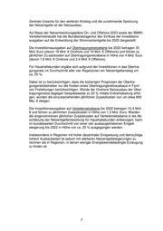 Zentrale Ursache für den weiteren Anstieg und die zunehmende Spreizung der Netzentgelte ist der Netzausbau. Auf Basis der Netzentwicklungspläne On- und Offshore 2023 sowie der BMWi- Verteilernetzstudie hat die Bundesnetzagentur den Einfluss der Investitions- ausgaben auf die Entwicklung der Stromnetzentgelte bis 2022 dargestellt: Die Investitionsausgaben auf Übertragungsnetzebene bis 2022 betragen 35 Mrd. Euro (davon 16 Mrd. € Onshore und 19 Mrd. € Offshore) und führen zu jährlichen Zu satzkosten auf Übertragungsnetzebene in Höhe von 4 Mrd. Euro (davon 1,6 Mrd. € Onshore und 2,4 Mrd. € Offshore). Für Haushaltskunden ergäbe sich aufgrund der Investitionen in das Übertra- gungsnetz im Durchschnitt aller vier Regelzonen ein Netzentgeltanstieg um ca. 20 %. Dabei ist zu berücksichtigen, dass die bisherigen Prognosen der Übertra- gungsnetzbetreiber nur die Kosten eines Übertragungsnetzausbaus in Form von Freileitungen berücksichtigen. Würde der Onshore Netzausbau der Über- tragungsnetze dagegen beispielsweise zu 20 % mittels Erdverkabelung erfol- gen, würden die einzubeziehenden jährlichen Zusatzkosten von um etwa 800 Mio. € steigen. Die Investitionsausgaben auf Verteilernetzebene bis 2022 betragen 15,4 Mrd. € und führen zu jährlichen Zusatzkosten in Höhe von 1,3 Mrd. Euro. Werden die angenommenen jährlichen Zusatzkosten auf Verteilernetzebene in die Ab- schätzung der Netzentgeltentwicklung für Haushaltskunden einbezogen, kann im bundesweiten Durchschnitt von einer rein ausbaugetriebenen Entgelt- steigerung bis 2022 in Höhe von ca. 25 % ausgegangen werden. Insbesondere in Regionen mit hoher dezentraler Einspeisung und demzufolge hohem Ausbaubedarf ist jedoch mit stärkeren Netzentgeltsteigerungen zu rechnen als in Regionen, in denen weniger Energiewendebedingte Erzeugung zu finden ist. 3