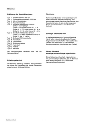 Hinweise Erklärung der Sportstättentypen Kommune Typ 1: Spielfeld kleiner 5.000 qm Kommunaler Betreiber einer Sportanlage kann Typ 2: Großspielfeld mindestens 5.000 qm eine kommunale Behörde/Verwaltung, eine Typ 3: 400-m Rundlaufbahn kommunale Anstalt öffentlichen Rechts oder eine Typ 4: Außentennisanlage Gesellschaft sein, die sich im überwiegenden Typ 5: Sporthalle mit folgenden Größen: Besitz (mindestens 51 %) einer Kommune Größe I: kleiner 200 qm befindet. Größe II: 200 qm bis kleiner 15 x 17 m Größe III: 15 x 27 m bis kleiner 18 x 36 m Größe IV: 18 x 36 m bis kleiner 22 x 44 m Typ 6: Sporthalle mit folgenden Größen Sonstige öffentliche Hand Größe V: 22 x 44 m bis kleiner 27 x 45 m Größe VI: über 27 x 45 m Typ 7: Großsport-/Mehrzweckhalle In die Betreiberkategorie "sonstige öffentliche Typ 8: Tennishalle Hand" fallen insbesondere Behörden/Verwal- Typ 9: Eissporthalle tungen sowie Gesellschaften und Anstalten des Typ 10: Schießsportanlage Landes und des Bundes (z.B. Bundeswehr, Typ 11: Hallenbad Bundesgrenzschutz, Hochschulen und Polizei). Typ 12: Freibad Typ 13: Naturbad Die Größenangaben beziehen sich auf die Verein, Verband, Nettosportfläche. sonstige gemeinnützige Organisation Diese Kategorie umfasst alle Organisationen mit gemeinnützigem Charakter, die als Betreiber Erhebungsbereich einer Anlage fungieren (z.B. Tennisclubs, Fachverbände und Kirchen). Die freiwillige Erhebung erfolgt für die Sportstätten der Städte und Gemeinden bzw. für die Gemeinden eines Amtes in Schleswig-Holstein. Statistikamt Nord 5