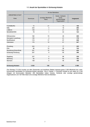 1.1. Anzahl der Sportstätten in Schleswig-Holstein Art des Betreibers KREISFREIE STADT Verein, Verband, sonstige öffentliche sonst. Kreis Kommune Insgesamt Hand gemeinnützige Organisation FLENSBURG 72 21 15 108 KIEL 243 4 19 266 LÜBECK 159 1 21 181 NEUMÜNSTER 78 1 44 123 Dithmarschen 182 15 29 226 Herzogtum Lauenburg 135 3 41 179 Nordfriesland 174 17 57 248 Ostholstein 176 10 61 247 Pinneberg 244 4 77 325 Plön 96 10 38 144 Rendsburg-Eckernförde 291 10 135 436 Schleswig-Flensburg 207 9 90 306 Segeberg 237 5 88 330 Steinburg 93 6 94 193 Stormarn 138 4 46 188 Schleswig-Holstein 2 525 120 855 3 500 Zum Stichtag 17.2.2014 wurden von allen Gemeinden und kreisfreien Städten ingesamt genau 3 500 öffentliche bzw. nicht- kommerzielle Sportstätten für Schleswig-Holstein gemeldet. Wie in Tabelle 1.1 ersichtlich handelt es sich dabei um 2 525 Anlagen mit kommunalem Betreiber, 855 Sportstätten haben Vereine, Verbände oder sonstige gemeinnützige Organisationen und 120 Fälle haben eine sonstige öffentliche Hand als Betreiber. Statistikamt Nord 7