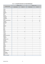Noch: 1.2. Ausgeübte Sportarten nach Sportstättentypen Hallenbad - Typ 11 Freibad - Typ 12 Ausgeübte Sportart Anzahl absolut Anteil in % Anzahl absolut Anteil in % Turnen – – – – Fußball – – – – Tennis – – – – Handball – – – – Pferdesport – – – – Segeln – – – – Golf – – – – Schützen – – – – Schwimmen 57 58,2 74 79,6 Tischtennis – – – – Leichtathletik – – – – Tanzen – – – – Reha- u. Behindertensport 14 14,3 3 3,2 Volleyball – – 3 3,2 Sportfischen – – – Badminton – – – – Judo – – – – Rudern – – – – Basketball – – – – Karate – – – – Kanu 2 2,0 – – Kegeln – – – – Boxen – – – – Schach – – – – Tauchen 17 17,3 11 11,8 Hockey – – – – Ju-Jutsu – – – – Luftsport – – – – Radsport-Verband BDR – – – – Rollsport – – – – Taekwondo – – – – Triathlon 6 6,1 2 2,2 American Football – – – – Motorjacht – – – – Floorball – – – – Motorsport SH – – – – Skilauf – – – – Aikido – – – – Fechten – – – – Eissport – – – – Baseball – – – – Billard – – – – Squash – – – – Minigolf – – – – Radsport-Solidarität – – – – Ringen – – – – Gewichtheben – – – – Gehörlosensport 1 1,0 – – Kendo – – – – Moderner Fünfkampf 1 1,0 – – Statistikamt Nord 13