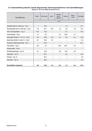 3.4. Kostenaufteilung aktueller, bereits abgerechneter, Sanierungsmaßnahmen nach Sportstättentypen Zeitraum: 2012 bis Mitte November 2013 Landes- Spon- Kreis Kommune Land sport- Vereine Sonstige Sportstättentyp soren verband in % Spielfeld (kleiner 5.000 qm) - Typ 1 – 78,4 – – 7,4 – 14,1 Großspielfeld (mind. 5.000 qm) - Typ 2 1,6 64,1 15,0 1,0 3,2 1,6 13,3 400-m Rundlaufbahn - Typ 3 10,5 74,8 – – 0,7 – 14,0 Tennisanlage - Typ 4 1,3 5,5 – 7,5 83,6 2,1 – Sporthalle (Größe I, II, III, IV) - Typ 5 0,0 82,9 6,5 0,1 0,0 0,4 10,2 Sporthalle (Größe V oder VI) - Typ 6 0,7 93,3 0,7 – – – 5,3 Großsport-/Mehrzweckhalle - Typ 7 – 57,9 – – – – 42,1 Tennishalle - Typ 8 8,8 5,7 – 14,9 66,1 4,4 – Eissporthalle - Typ 9 – – – – – – – Schießsportanlage - Typ 10 5,7 70,0 – 5,9 16,3 2,0 – Hallenbad - Typ 11 – 80,1 – – 0,5 – 19,4 Freibad - Typ 12 – 92,1 – – – – 7,9 Naturbad - Typ 13 – 93,8 – – – – 6,2 Sportstätten insgesamt 0,5 78,0 3,4 0,2 1,3 0,3 16,3 Statistikamt Nord 21