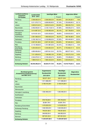 Schleswig-Holsteinischer Landtag - 18. Wahlperiode Drucksache 18/945 Landesinvestitions- bewilligte Mittel abgerufene Mittel Landesmittel programm 2010 - 2013 Prozent Prozent U3-Ausbau Flensburg 2.596.699,34 € 2.596.699,33 € 100,00% 204.246,65 € 7,9% Kiel 5.311.070,77 € 4.628.952,80 € 87,16% 1.702.626,95 € 32,1% Lübeck 3.020.610,40 € 3.020.610,40 € 100,00% 398.003,73 € 13,2% Neumünster 2.452.050,81 € 2.145.110,81 € 87,48% 449.005,27 € 18,3% Dithmarschen 3.414.887,24 € 3.180.585,48 € 93,14% 527.738,09 € 15,5% Herzogtum 5.010.551,50 € 5.003.200,60 € 99,85% 2.439.633,05 € 48,7% Lauenburg Nordfriesland 2.091.569,25 € 1.992.625,24 € 95,27% 480.764,88 € 23,0% Ostholstein 3.192.166,74 € 3.102.896,50 € 97,20% 653.440,62 € 20,5% Pinneberg 2.937.351,88 € 2.937.351,88 € 100,00% 787.800,00 € 26,8% Plön 2.115.169,50 € 1.721.987,25 € 81,41% 151.658,21 € 7,2% Rendsburg- 5.264.629,40 € 4.346.884,30 € 82,57% 2.752.862,01 € 52,3% Eckernförde Schleswig- 4.893.906,96 € 4.587.641,34 € 93,74% 660.577,42 € 13,5% Flensburg Segeberg 7.411.639,43 € 7.189.085,18 € 97,00% 1.105.273,18 € 14,9% Steinburg 2.344.070,51 € 2.195.420,47 € 93,66% 170.499,26 € 7,3% Stormarn 7.989.916,51 € 7.985.420,20 € 99,94% 1.535.649,23 € 19,2% Schleswig-Holstein 60.046.290,24 € 56.634.471,78 € 94,32% 14.019.778,55 € 23,3% Zugewiesene Bewilligte Bundesprogramm Abgerufene „Kinderbetreuungsfinanzierung“ Bundesmittel Bundemittel Bundesmittel seit März 2013 2013-2014 2013-2014 Flensburg 182.971,39 € 182.971,39 € - Kiel 1.511.698,28 € 1.511.698,28 € - Lübeck 2.109.316,36 € 2.109.316,36 € - Neumünster - - - Dithmarschen - - - Herzogtum Lauenburg 1.352.480,03 € 1.352.480,03 € - Nordfriesland - - - Ostholstein - - - Pinneberg 878.753,08 € 878.753,08 € - Plön 30.991,78 € 30.991,78 € - Rendsburg-Eckernförde 1.419.220,53 € 1.419.220,53 € - Schleswig-Flensburg 1.540.500,00 € 1.540.500,00 € - Segeberg 745.031,60 € 745.031,60 € - Steinburg 346.952,50 € 346.952,50 € - Stormarn 927.031,53 € 927.031,53 € - Schleswig-Holstein 11.044.947,08 € 11.044.947,08 € - 3