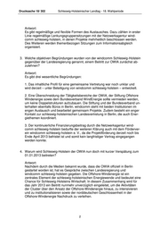 Drucksache 18/ 302 Schleswig-Holsteinischer Landtag - 18. Wahlperiode Antwort: Es gibt regelmäßige und flexible Formen des Austausches. Dazu zählen in erster Linie regelmäßige Lenkungsgruppensitzungen mit der Netzwerkagentur wind- comm schleswig-holstein, in denen Projekte mehrheitlich beschlossen werden. Des Weiteren werden themenbezogen Sitzungen zum Informationsabgleich organisiert. 3. Welche objektiven Begründungen wurden von der windcomm Schleswig-Holstein gegenüber der Landesregierung genannt, einem Beitritt zur OWIA zunächst ab- zulehnen? Antwort: Es gibt drei wesentliche Begründungen: 1. Das inhaltliche Profil für eine gemeinsame Vertretung war noch unklar und wird derzeit – unter Beteiligung von windcomm schleswig-holstein – entwickelt. 2. Eine Überschneidung der Tätigkeitsbereiche der OWIA, der Stiftung Offshore Windenergie sowie dem Bundesverband WindEnergie sollte vermieden werden, um keine Doppelstrukturen aufzubauen. Die Stiftung und der Bundesverband un- terhalten ebenfalls Büros in Berlin. windcomm steht mit beiden Institutionen im engen Austausch und bearbeitet gemeinsam Projekte. Zudem besteht ein enger Kontakt zur schleswig-holsteinischen Landesvertretung in Berlin, die auch Ener- giethemen koordiniert. 3. Der kontinuierliche Finanzierungsbeitrag durch die Netzwerkagentur wind- comm schleswig-holstein bedurfte der weiteren Klärung auch mit dem Förderver- ein windcomm schleswig-holstein e. V., da die Projektförderung derzeit noch bis Ende April 2013 befristet ist und somit kein langfristiger Vertrag eingegangen werden konnte. 4. Warum wird Schleswig-Holstein der OWIA nun doch mit kurzer Verspätung zum 01.01.2013 beitreten? Antwort: Nachdem durch die Medien bekannt wurde, dass die OWIA offiziell in Berlin gestartet worden ist, hat es Gespräche zwischen Landesregierung und windcomm schleswig-holstein gegeben. Die Offshore-Windenergie ist ein zentrales Element der schleswig-holsteinischen Energiewende und bedeutet eine Chance für Schleswig-Holsteins Wirtschaft. In diesem Zusammenhang wird für das Jahr 2013 ein Beitritt nunmehr unverzüglich eingeleitet, um die Aktivitäten der Cluster über den Ansatz der Offshore-Windenergie hinaus, zu intensivieren und zu institutionalisieren sowie der norddeutschen Geschlossenheit in der Offshore-Windenergie Nachdruck zu verleihen. 2