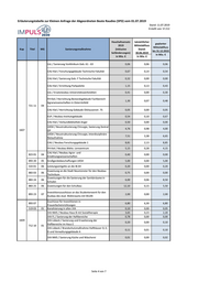 Erläuterungstabelle zur Kleinen Anfrage der Abgeordneten Beate Raudies (SPD) vom 01.07.2019 Stand: 11.07.2019 Erstellt von: VI 212 Haushaltsansatz tatsächlicher geplanter 2019 Mittelabfluss Mittelabfluss Kap Titel MG Sanierungsmaßnahme (inklusive Stand: bis 31.12.2019 Solländerungen) 30.06.2019 in Mio. € in Mio. € in Mio. € Investitionskostenzuschuss an die Deutsche Rockmusik Stiftung für den Erwerb, Um- und Ausbau eines 893 17 02 0,00 0,00 0,16 ehemaligen Bunkers in Flensburg zu einer Musikproduktionseinrichtung Investitionszuschüsse für Maßnahmen in 893 18 02 0,50 0,00 0,50 Gedenkstätten Investitionszuschuss an den Kirchenkreis Nordfriesland 893 19 02 für die Bau- und Sanierungsmaßnahmen an den 0,50 0,00 0,50 Eiderstedter Kirchen Zuschuss an die Landesverbände der Jüdischen 893 21 02 0,50 0,00 0,50 Gemeinden für Bau- und Sanierungsmaßnahmen Zuschuss an das Nordkolleg Rendsburg für Bau- und 893 22 02 0,80 0,00 0,80 Sanierungsmaßnahmen Leistungsentgelte an die IB.SH zur Abwicklung des 533 02 02 0,08 0,00 0,08 Investitionsprogramms freie Kulturszene Zuschuss für den Neubau eines S3-Laborgebäudes am 892 01 03 5,50 0,80 4,20 Forschungszentrum Borstel (NRZ) 519 02 04 CAU, Sanierung der Abwasserleitungen 1,00 0,08 0,96 HS und Universität Flensburg, FH Kiel, FH Westküste, 519 03 04 FH Lübeck, Musikhochschule Lübeck, Sanierung der 1,30 0,03 0,96 1607 Abwasserleitungen 519 04 04 CAU, Sportforum Brandschutzmaßnahmen 2,77 0,60 3,34 Musikhochschule Lübeck, Brandschutzmaßnahme: 519 05 04 0,01 0,01 0,01 Erneuerung Brandmeldeanlage 519 06 04 energetische Maßnahmen an Hochschulliegenschaften 0,43 0,00 0,00 FH Lübeck / Neubau Seminargebäude 0,18 0,11 0,62 FH Lübeck / Anpassung Stromversorgung 0,12 0,03 0,29 FH Lübeck / Gebäudeleittechnik 1,01 0,12 1,00 UzL / Zentralbibliothek energetische 1,65 0,00 0,40 Fassadensanierung 721 11 04 CAU Kiel / Ersatzneubau Geowissenschaften 5,20 0,59 3,86 CAU Kiel / Ersatzneubau Geotechnikum 1,20 0,20 0,70 CAU Kiel / Juridicum Bibliotheksriegel 0,98 0,09 1,95 CAU Kiel / Sanierung Fakultätenblöcke LS 6 0,40 0,00 0,40 CAU Kiel / Ersatzneubau Tierhaltung 6,25 0,75 6,85 Seite 3 von 7