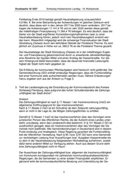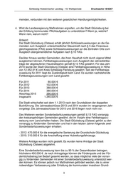 Schleswig-Holsteinischer Landtag - 18. Wahlperiode Drucksache 18/5257 meinden, verbunden mit den weiteren gesetzlichen Handlungsmöglichkeiten. 4. Wird die Landesregierung Maßnahmen ergreifen, um die Stadt Glücksburg bei der Erfüllung kommunaler Pflichtaufgaben zu unterstützen? Wenn ja, welche? Wenn nein, warum nicht? Antwort: Die Stadt Glücksburg (Ostsee) erhält jährlich Schlüsselzuweisungen an die Ge- meinden zum Ausgleich unterschiedlicher Steuerkraft nach § 5 des Finanzaus- gleichsgesetzes (FAG) sowie Schlüsselzuweisungen an die Zentralen Orte zum Ausgleich übergemeindlicher Aufgaben nach § 10 FAG. Darüber hinaus werden Gemeinden, die ihren Haushalt nicht durch eigene Mittel ausgleichen können, Fehlbetragszuweisungen zum Ausgleich der Jahresfehlbe- träge der abgelaufenen Haushaltsjahre gemäß § 12 FAG gewährt. Für das Jahr 2010 wurde der Stadt Glücksburg (Ostsee) eine Fehlbetragszuweisung in Höhe von 12.552,91 € vom Kreis Schleswig-Flensburg gewährt. Seit der Fehlbetrags- zuweisung für 2011 liegt die Zuständigkeit beim Land. Es wurden nachstehende Fehlbetragszuweisungen vom Land gezahlt: Für 2011 80.000 € Für 2012 102.000 € Für 2013 388.000 € Für 2014 380.000 € Abschlag 2015 390.000 € Insgesamt 1.340.000 € Die Stadt wirtschaftet seit dem 1.1.2013 nach den Grundsätzen der doppelten Buchführung. Die Jahresabschlüsse 2013 und 2014 wurden im vergangenen Jahr vorgelegt. Die Jahresabschüsse für 2015 und 2016 liegen noch nicht vor. Des Weiteren werden Sonderbedarfszuweisungen gemäß § 13 FAG vorrangig den kreisangehörigen Gemeinden gewährt, die im Vorjahr eine Fehlbetragszu- weisung vom Land erhalten haben. Die Stadt Glücksburg (Ostsee) gehört zu den vorrangig zu fördernden Gemeinden und hat in den letzten Jahren folgende zwei Sonderbedarfszuweisungen erhalten: - 2012: 470.000 € für die energetische Sanierung der Grundschule Glücksburg - 2015: 310.000 € für die Anschaffung eines Hubrettungsfahrzeugs. Weitere Anträge wurden nicht gestellt. Es wurden keine Anträge der Stadt Glücksburg (Ostsee) abgelehnt. Eine Sonderbedarfszuweisung kann bis zu 90 % der Gesamtkosten betragen, höchstens 450.000 €. Je nach Antragslage können die Förderquote und der För- derhöchstbetrag bei Bedarf gesenkt werden, so dass möglichst viele der vorran- gig zu fördernden Gemeinden mit einer Sonderbedarfszuweisung unterstützt wer- den können. Es können jedoch nur Maßnahmen gefördert werden, die zu einer notwendigen Verbesserung oder Erhaltung der kommunalen investiven Grund- 3