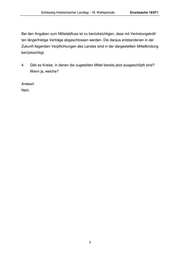 Schleswig-Holsteinischer Landtag - 18. Wahlperiode Drucksache 18/871 Bei den Angaben zum Mittelabfluss ist zu berücksichtigen, dass mit Vertretungskräf- ten längerfristige Verträge abgeschlossen werden. Die daraus entstandenen in der Zukunft liegenden Verpflichtungen des Landes sind in der dargestellten Mittelbindung berücksichtigt. 4. Gibt es Kreise, in denen die zugeteilten Mittel bereits jetzt ausgeschöpft sind? Wenn ja, welche? Antwort: Nein. 3