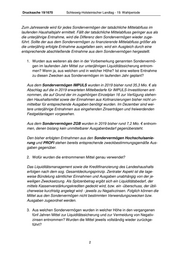 Drucksache 19/1670 Schleswig-Holsteinischer Landtag - 19. Wahlperiode Zum Jahresende wird für jedes Sondervermögen der tatsächliche Mittelabfluss im laufenden Haushaltsjahr ermittelt. Fällt der tatsächliche Mittelabfluss geringer aus als die unterjährige Entnahme, wird die Differenz dem Sondervermögen wieder zuge- führt. Sollte der aus dem Sondervermögen zu finanzierende Mittelabfluss größer als die unterjährig erfolgte Entnahme ausgefallen sein, wird ein Ausgleich durch eine entsprechende abschließende Entnahme aus dem Sondervermögen hergestellt. 1. Wurden aus weiteren als den in der Vorbemerkung genannten Sondervermö- gen im laufenden Jahr Mittel zur unterjährigen Liquiditätssicherung entnom- men? Wenn ja, aus welchen und in welcher Höhe? Ist eine weitere Entnahme zu diesen Zwecken aus Sondervermögen im laufenden Jahr geplant? Aus dem Sondervermögen IMPULS wurden in 2019 bisher rund 35,3 Mio. € als Abschlag auf die in 2019 erwarteten Mittelbedarfe für IMPULS-Investitionen ent- nommen, die auf Grund der im zugehörigen Einzelplan 16 zur Verfügung stehen- den Haushaltsmittel sowie der Einnahmen aus Kofinanzierungen bisher nicht un- mittelbar für entsprechende Ausgaben benötigt wurden. Im Dezember sind wei- tere unterjährige Entnahmen aus eingehenden Zinserträgen und freiwerdenden Festgeldanlagen vorgesehen. Aus dem Sondervermögen ZGB wurden in 2019 bisher rund 7,2 Mio. € entnom- men, denen bislang kein unmittelbarer Ausgabenbedarf gegenübersteht. Den bisher erfolgten Entnahmen aus den Sondervermögen Hochschulsanie- rung und PROFI stehen bereits entsprechende zweckbestimmungsgemäße Aus- gaben gegenüber. 2. Wofür wurden die entnommenen Mittel genau verwendet? Das Liquiditätsmanagement sowie die Kreditfinanzierung des Landeshaushalts erfolgen nach dem sog. Gesamtdeckungsprinzip. Zentraler Aspekt ist die tage- weise Bündelung sämtlicher Einnahmen und Ausgaben unabhängig von der je- weiligen Zwecksetzung. Als Spitzenbetrag ergibt sich ein Liquiditätsbedarf, der mittels Kassenverstärkungskrediten gedeckt wird, bzw. ein -überschuss, der übli- cherweise kurzfristig angelegt wird - jeweils zu Negativzinsen. Folglich können die Mittel aus den Sondervermögen nicht bestimmten Verwendungszwecken bzw. Ausgaben zugeordnet werden. 3. Aus welchen Sondervermögen wurden in welcher Höhe in den vergangenen fünf Jahren Mittel zur Liquiditätssicherung und zur Vermeidung von Negativ- zinsen entnommen? Wurden die Mittel jeweils vollständig wieder zurückge- führt? 2