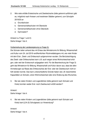 Drucksache 19/1465 Schleswig-Holsteinischer Landtag - 19. Wahlperiode 2. Wie viele erfüllte Erstwünsche und Zweitwünsche (bitte getrennt aufführen) gibt es, möglichst nach Kreisen und kreisfreien Städten getrennt, zum Schuljahr 2019/20 an a. Grundschulen b. Gemeinschaftsschulen mit Oberstufe c. Gemeinschaftsschulen ohne Oberstufe d. Gymnasien? Antwort zu Frage 1 und 2): Siehe Anlage 1 bis 4. Vorbemerkung der Landesregierung zu Frage 3): Die Schulen teilen anhand des mit Erlass des Ministeriums für Bildung, Wissenschaft und Kultur vom 24. Juli 2018 veröffentlichten Rückmeldebogens mit, wie viele Kinder mit dem Erst-, Zweit- und Drittwunsch aufgenommen wurden. Die Berücksichtigung des Zweit- oder Drittwunsches kann z.B. auch wegen eines Wohnortwechsel erfol- gen, oder weil der Erstwunsch aufgegeben wird. Für die Beantwortung der Frage 3) geht das Ministerium für Bildung, Wissenschaft und Kultur davon aus, dass bei allen Anmeldungen auf Basis des Drittwunsches der Erst- oder der Zweitwunsch nicht er- füllt werden konnte. Das kann unterschiedliche Gründe haben wie z.B. beschränkte Kapazitäten an Schulen, einen Wohnortwechsel oder eine Änderung des Wunsches. 3. Bei wie vielen Kindern und Jugendlichen (bitte getrennt nach Schulart und Kreis) konnten weder Erst- noch Zweitwunsch erfüllt werden? Antwort: Siehe Anlage 1 bis 4. 4. Bei wie vielen Kindern und Jugendlichen (bitte getrennt nach Schulart und Kreis) kam § 24 (5) Schulgesetz zur Anwendung? Antwort: Siehe Anlage 1 bis 4. 2