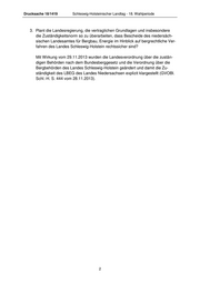 SCHLESWIG-HOLSTEINISCHER LANDTAG Drucksache 18/1419 18. Wahlperiode 2013-12-20 Kleine Anfrage des Abgeordneten Jens-Christian Magnussen (CDU) und Antwort der Landesregierung – Minister für Energiewende, Landwirtschaft, Umwelt und ländliche Räume Landesbergbaubehörde für Schleswig-Holstein Vorbemerkung Das Landesamt für Bergbau, Energie und Geologie (LBEG) in Niedersachsen ist gleichzeitig Bergbaubehörde für Schleswig-Holstein. Es arbeiten dort 300 Mitarbeite- rinnen und Mitarbeiter für insgesamt vier norddeutsche Länder. 1. Welche Kosten würden nach Auffassung der Landesregierung entstehen, wenn das Land Schleswig-Holstein die Aufgaben des LBEG in allen Bereichen selbst organisieren würde? Derzeit wird von der Landesregierung die Möglichkeit evaluiert, die Aufgaben des LBEG auf eine schleswig-holsteinische Behörde zu übertragen. Bei der Evaluierung stehen die Ermittlung des erforderlichen Personals und die für das Land entstehenden Kosten im Vordergrund. Über das Ergebnis wird die Landesregierung den Landtag unverzüglich informieren. 2. Wie viel Personal mit welcher Qualifikation ist erforderlich, um die Aufgaben des LBEG in allen Bereichen übernehmen zu können? Bitte tabellarisch dar- stellen. Siehe Antwort zu 1.