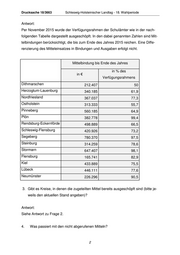 SCHLESWIG-HOLSTEINISCHER LANDTAG Drucksache 18/3663 18. Wahlperiode 2015-12-17 Kleine Anfrage der Abgeordneten Heike Franzen (CDU) und Antwort der Landesregierung - Ministerin für Schule und Berufsbildung Ausschöpfung des Vertretungsfonds 1. In welcher Höhe war der Vertretungsfonds per Ende November 2015 ausge- schöpft (bitte die Maßnahmen im Einzelnen aufschlüsseln sowie den jeweiligen Mittelfluss an Gymnasien, Gemeinschaftsschulen mit Oberstufe und berufliche Schulen angeben)? Antwort: Die Ausgaben für den Vertretungsfonds beliefen sich per Ende November 2015 auf insgesamt 11.883 T€. Von den Ausgaben entfallen 5.369 T€ auf die schulamtsge- bundenen Schulen, 3.072 T€ auf die Gymnasien, 1.559 T€ auf die Gemeinschafts- schulen mit Oberstufe und 1.883 T€ auf die beruflichen Schulen. Darüber hinaus wurden Aufstockungen bereits im Schuldienst befindlicher Lehrkräfte im Umfang von 1.542 T€ vorgenommen. 2. Wie weit wurde der Verfügungsrahmen der Schulämter per Ende November 2015 ausgeschöpft (bitte jeweils die Mittelbindung sowie die Ausschöpfung des Verfügungsrahmens absolut und prozentual angeben)?