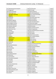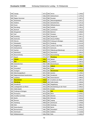 Schleswig-Holsteinischer Landtag - 18. Wahlperiode Drucksache 18/4289 313 Landkreis Heidekreis 244,5 313 Wittenberg 1.678,0 314 Goslar 244,8 314 Anhalt-Bitterfeld 1.679,8 315 Kaufbeuren 245,2 315 Straubing 1.683,8 316 Helmstedt 245,3 316 Görlitz 1.718,4 317 Darmstadt 246,2 317 Wiesbaden 1.718,5 318 Würzburg 248,8 318 Burgenlandkreis 1.741,9 319 Kempten (Allgäu) 254,5 319 Mettmann 1.742,1 320 Hamm 256,0 320 Göttingen 1.748,5 321 Gera 259,3 321 Lüneburg 1.749,9 322 Schweinfurt 259,6 322 Mainz 1.815,1 323 Göttingen 263,8 323 Frankenthal (Pfalz) 1.823,0 324 München 264,3 324 Nürnberg 1.836,7 325 Rostock 270,4 325 Wesel 1.837,5 326 Landau in der Pfalz 272,1 326 Solingen 1.841,5 327 Krefeld 274,2 327 Frankfurt (Oder) 1.875,1 328 Oldenburg (Oldenburg) 275,3 328 Kleve 1.876,3 329 Straubing 275,9 329 Regionalverband Saarbrücken 1.894,6 330 Neustadt an der Weinstraße 279,7 330 Schwerin 1.912,3 331 Gießen 280,2 331 Heinsberg 1.916,1 332 Chemnitz 280,9 332 Düren 1.917,6 333 Oberhausen 281,4 333 Worms 1.934,3 334 Heilbronn 282,9 334 Kassel 1.953,3 335 Herne 283,3 335 Mülheim an der Ruhr 1.965,2 336 Regensburg 284,6 336 Pinneberg 1.967,9 337 Coburg 284,9 337 Offenbach am Main 1.984,5 338 Aschaffenburg 289,0 338 Oberhausen 1.994,3 339 Leverkusen 289,7 339 Bottrop 1.996,3 340 Cottbus 290,5 340 Bielefeld 1.997,1 341 Augsburg 292,1 341 Unna 2.003,2 342 Dessau-Roßlau 292,6 342 Coesfeld 2.021,3 343 Schwerin 294,1 343 Hagen 2.026,1 344 Hagen 295,1 344 Pirmasens 2.052,6 345 Pforzheim 301,8 345 Wolfsburg 2.053,2 346 Emden 303,9 346 Rhein-Kreis Neuss 2.055,7 347 Heidelberg 304,4 347 Heidelberg 2.057,3 348 Frankfurt (Oder) 305,3 348 Bamberg 2.059,7 349 Weiden i.d.OPf. 306,1 349 Borken 2.071,5 350 Ingolstadt 306,9 350 Recklinghausen 2.079,6 351 Speyer 310,9 351 Rhein-Erft-Kreis 2.097,3 352 Mainz 316,0 352 Ludwigshafen am Rhein 2.101,5 353 Frankenthal (Pfalz) 318,5 353 Hamm 2.162,2 354 Offenbach am Main 323,2 354 Cottbus 2.181,1 355 Erfurt 324,9 355 Rostock 2.192,3 356 Ulm 326,4 356 Region Hannover 2.196,1 357 Bamberg 326,6 357 Regensburg 2.222,9 9
