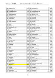 Drucksache 18/4289 Schleswig-Holsteinischer Landtag - 18. Wahlperiode 358 Leipzig 327,3 358 Herne 2.249,6 359 Trier 328,2 359 Delmenhorst 2.279,3 360 Region Hannover 331,5 360 Dresden 2.297,2 361 Rosenheim 333,4 361 Mönchengladbach 2.321,2 362 Koblenz 335,6 362 Gelsenkirchen 2.371,8 363 Essen 343,0 363 Wilhelmshaven 2.384,4 364 Nürnberg 343,3 364 Krefeld 2.391,5 365 Bochum 344,3 365 Leverkusen 2.410,5 366 Wuppertal 347,4 366 Bochum 2.430,9 367 Hof 347,4 367 Potsdam 2.445,1 368 Duisburg 350,2 368 Wuppertal 2.451,2 369 Karlsruhe 350,3 369 Dessau-Roßlau 2.457,2 370 Worms 350,6 370 Freiburg im Breisgau 2.504,9 371 Wiesbaden 362,0 371 Duisburg 2.512,0 372 Magdeburg 363,7 372 Landau in der Pfalz 2.518,8 373 Delmenhorst 366,3 373 Karlsruhe 2.525,6 374 Aachen 367,9 374 Oldenburg (Oldenburg) 2.557,4 375 Mannheim 368,9 375 Mannheim 2.642,4 376 Braunschweig 371,0 376 Braunschweig 2.655,1 377 Kassel 372,3 377 Flensburg 2.660,2 378 Lübeck 378,7 378 Speyer 2.669,7 379 Kiel 381,7 379 Landshut 2.687,0 380 Gelsenkirchen 382,7 380 Bremerhaven 2.692,5 381 Bonn 384,4 381 Lübeck 2.708,7 382 Düsseldorf 389,6 382 Essen 2.715,1 383 Stuttgart 405,6 383 Neumünster 2.741,4 384 Mönchengladbach 407,2 384 Aachen 2.749,5 385 Regionalverband Saarbrücken 409,7 385 Osnabrück 2.801,8 386 Landshut 416,2 386 Kaiserslautern 2.804,4 387 Neumünster 418,9 387 Frankfurt am Main 2.897,3 388 Flensburg 419,2 388 Halle (Saale) 2.920,8 389 Osnabrück 423,2 389 Magdeburg 2.945,3 390 Ludwigshafen am Rhein 424,2 390 Brandenburg an der Havel 2.956,4 391 Halle (Saale) 428,0 391 Emden 3.115,0 392 Freiburg im Breisgau 431,1 392 Kiel 3.205,9 393 Pirmasens 457,0 393 Bonn 3.376,2 394 Frankfurt am Main 466,1 394 Bremen 3.553,3 395 Berlin 466,6 395 Münster 3.633,6 396 Bremen 487,5 396 Leipzig 3.658,4 397 Hamburg 499,9 397 Dortmund 3.759,8 398 Köln 513,3 398 Hamburg 4.006,3 399 Kaiserslautern 531,9 399 Berlin 4.088,4 400 Bremerhaven 546,7 400 Düsseldorf 4.113,3 401 Dortmund 559,2 401 Koblenz 4.120,8 402 Wilhelmshaven 569,3 402 Köln 4.420,2 10