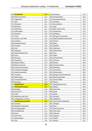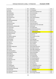 Drucksache 18/4289 Schleswig-Holsteinischer Landtag - 18. Wahlperiode 133 Karlsruhe 21,2 133 Stuttgart 64,3 134 Frankfurt (Oder) 21,2 134 Waldshut 64,3 135 Hof 21,1 135 Sömmerda 64,3 136 Eichsfeld 20,9 136 Tuttlingen 64,2 137 Lüneburg 20,8 137 Ulm 64,2 138 Grafschaft Bentheim 20,8 138 Helmstedt 64,1 139 Paderborn 20,8 139 Gotha 64,1 140 Hildesheim 20,6 140 Eichstätt 63,9 141 Bad Kreuznach 20,5 141 Nürnberger Land 63,9 142 Eifelkreis Bitburg-Prüm 20,5 142 Nordhausen 63,8 143 Bodenseekreis 20,5 143 Wilhelmshaven 63,7 144 Borken 20,4 144 Vogelsbergkreis 63,7 145 Hochsauerlandkreis 20,4 145 Rottweil 63,7 146 Darmstadt-Dieburg 20,4 146 Weimarer Land 63,7 147 Märkisch-Oderland 20,4 147 Cloppenburg 63,5 148 Chemnitz 20,4 148 Grafschaft Bentheim 63,5 149 Fürth 20,2 149 Vogtlandkreis 63,5 150 Rhein-Neckar-Kreis 20,1 150 Erzgebirgskreis 63,4 151 Rhein-Pfalz-Kreis 20,0 151 Harz 63,4 152 Oberhausen 19,9 152 Altenburger Land 63,4 153 Wiesbaden 19,9 153 Rhein-Lahn-Kreis 63,3 154 Rastatt 19,8 154 Calw 63,3 155 Landkreis Heidekreis 19,7 155 Pfaffenhofen a.d.Ilm 63,3 156 Heinsberg 19,7 156 Schweinfurt 63,3 157 Altötting 19,7 157 Saale-Holzland-Kreis 63,3 158 Aachen 19,6 158 Göttingen 63,2 159 Neuwied 19,6 159 Hersfeld-Rotenburg 63,2 160 Oberbergischer Kreis 19,5 160 Bamberg 63,2 161 Herford 19,5 161 Werra-Meißner-Kreis 63,0 162 Stendal 19,5 162 Baden-Baden 63,0 163 Birkenfeld 19,4 163 Pforzheim 63,0 164 Main-Tauber-Kreis 19,4 164 Memmingen 63,0 165 Altenburger Land 19,4 165 Lahn-Dill-Kreis 62,9 166 Teltow-Fläming 19,1 166 Bad Tölz-Wolfratshausen 62,9 167 Nordsachsen 19,1 167 Heidenheim 62,8 168 Main-Taunus-Kreis 19,0 168 Erlangen 62,8 169 Offenbach 18,9 169 Landkreis Heidekreis 62,7 170 Freising 18,9 170 Konstanz 62,7 171 Cottbus 18,9 171 Mecklenburgische Seenplatte 62,7 172 Cloppenburg 18,8 172 Erfurt 62,7 173 Schweinfurt 18,8 173 Marburg-Biedenkopf 62,6 174 Spree-Neiße 18,8 174 Emsland 62,5 175 Germersheim 18,6 175 Vorpommern-Rügen 62,5 176 Tuttlingen 18,6 176 Zollernalbkreis 62,4 177 Waldshut 18,6 177 Ansbach 62,4 32