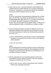 Schleswig-Holsteinischer Landtag - 18. Wahlperiode Drucksache 18/3315 3. Werden neben den unter 1. genannten Mitarbeitern weitere Mitarbeiter der Landesverwaltung aus anderen Behörden, bzw. aus anderen Organisations- einheiten der Landespolizei zur Unterstützung im Bereich der Flüchtlingsbe- treuung bis auf weiteres eingesetzt und wenn ja, welche? Antwort: Es sind aus verschiedenen Verwaltungsbereichen Mitarbeiterinnen und Mitar- beiter in der BAO tätig, unter anderem aus dem Ministerium für Inneres und Bundesangelegenheiten (MIB), Referat IV 13, IV 33, sowie aus dem Ministeri- um für Soziales, Gesundheit, Wissenschaft und Gleichstellung. Darüber hinaus sind alle anderen Ressorts gebeten worden, im Wege der Ab- ordnung vorübergehend Kräfte zur Unterstützung zur Verfügung zu stellen. 4. Hat die Landesregierung geprüft, ob anstelle von Mitarbeitern aus dem Lan- despolizeiamt Mitarbeiter anderer Behörden und Einrichtungen des Landes die Unterstützungsleistungen im Bereich der Flüchtlingsbetreuung wahrneh- men können, und a) wenn ja, welche Behörden und Einrichtungen wurden in die Überlegungen einbezogen und aus welchem Grund wurde von einem Einsatz dieser Mit- arbeiter abgesehen? b) wenn nein, warum nicht? Antwort: Eine ressortübergreifende Unterstützungsanfrage ist seitens des MIB gestellt worden. Erste Rückmeldungen bezüglich der Personalgestellung sind bereits eingetroffen. Die Einbindung dieser Mitarbeiterinnen und Mitarbeiter ist in un- terschiedlichen Bereichen vorgesehen. 5. Sieht die Landesregierung in der Unterstützungsleistung im Bereich der Flüchtlingsbetreuung eine zusätzliche Aufgabe“ im Sinne des Landtagsbe- schlusses vom 18.06.2015 (Drs. 18/ 3115) und a) wenn ja, wann, wie und in welchem Umfang werden hierfür zusätzliche Stellen bei der Landespolizei geschaffen? 3