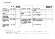 Antwort auf Frage 1 Ressort Stellenplan Anzahl im Bemerkung Staatssekretär/-in Anzahl nach zu Titel Haushalt Neubildung der 2011/2012 Landesregierung 1 Staatskanzlei 0301-422 01 2 1 Planstelle der BesGr. B 9 CdS – Stefan Studt 1 übertragen nach 1301-422 01 Ministerium für Jus- 0901-422 01 1 II St – Dr. Eberhard Schmidt- 1 tiz, Kultur und Eu- Elsaeßer ropa 1 Ministerium für Bil- 0701-422 01 1 1 Planstelle der BesGr. B 9 III St/B – Dirk Loßack 2 dung und Wissen- übertragen von 0601-422 01 III St/W – Rolf Fischer schaft (III St/W) Innenministerium 0401-422 01 1 IV St – Bernd Küpperbusch 1 1 Ministerium für 1301-422 01 1 1 Planstelle der BesGr. B 9 V St – Dr. Ulf Kämpfer 2 Energiewende, übertragen von 0301-422 01 V St E – Ingrid Nestle Landwirtschaft, Umwelt und ländli- che Räume Finanzministerium 0501-422 01 1 VI St – Thomas Losse-Müller 1 1 Ministerium für 0601-422 01 2 1 Planstelle der BesGr. B 9 VII StW – Dr. Frank Nägele 2 Wirtschaft, Arbeit, übertragen nach 0701-422 01 VII StA – Ralph Müller-Beck Verkehr und Tech- (neu: III St/W) nologie 1 neue SDV-Stelle gem. § 49 Abs. 5 LHO analog2 der BesGr. B 9 eingerichtet Ministerium für So- 1001-422 01 1 VIII St – Anette Langner 1 ziales, Gesundheit, Familie und Gleich- stellung 10 11 1 Entsprechend den in den Stellenplänen ausgebrachten Vermerken „künftig umzuwandeln“ wurden infolge der Änderung des Landesbesoldungsgesetzes durch Artikel 4 Haushaltsbegleitgesetz 2011/2012 alle in den Ressorts ausgebrachten Planstellen der Besoldungsgruppe B 10 mit Freiwerden in Planstellen der Besoldungsgruppe B 9 umgewandelt. 2 Mit Einwilligung des Finanzministeriums wurde gemäß § 49 Abs. 5 S. 2 LHO eine Stelle für einen Sonderdienstvertrag (SDV) analog der Besoldungsgruppe B9 eingerichtet. Mit Staatssekretär Müller-Beck ist ein entsprechender SDV geschlossen worden.