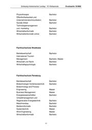 Schleswig-Holsteinischer Landtag - 18. Wahlperiode Drucksache 18/3888 Physiotherapie Bachelor Öffentlichkeitsarbeit und Unternehmenskommunikation Bachelor Soziale Arbeit Bachelor Technologiemanagement und -marketing Bachelor Wirtschaftsinformatik Bachelor Wirtschaftsinformatik online Bachelor Fachhochschule Westküste Betriebswirtschaft Bachelor International Tourism Management Bachelor, Master Wirtschaft und Recht Bachelor Wirtschaftspsychologie Bachelor Fachhochschule Flensburg Betriebswirtschaft Bachelor Biotechnologie-Verfahrenstechnik Bachelor Biotechnology and Process Engineering Master Business Management Master Energiewissenschaften Bachelor Umweltmanagement und Regenerative Energietechnik Bachelor Maschinenbau Bachelor Medieninformatik Bachelor Systemtechnik Master Wind Engineering Master Wirtschaftsinformatik Bachelor 17