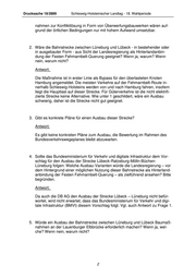 SCHLESWIG-HOLSTEINISCHER LANDTAG Drucksache 18/2889 18. Wahlperiode 15-04-15 Kleine Anfrage des Abgeordneten Christopher Vogt (FDP) und Antwort der Landesregierung - Ministerium für Wirtschaft, Arbeit, Verkehr und Technologie Hinterlandanbindung zur Festen Fehmarnbelt-Querung: Ausbau der Bahnstre- cke zwischen Lüneburg und Lübeck 1. Ist es richtig, dass der Ausbau der Bahnstrecke Lübeck-Ratzeburg-Mölln- Büchen-Lüneburg vom Land Niedersachsen für den neuen „Bundesverkehrs- wegeplan Schiene“ vorgeschlagen wurde und von Schleswig-Holstein nicht? Wenn ja, wie steht die Landesregierung zu einem möglichen Ausbau? Antwort: Beide Länder haben die Elektrifizierung und Ertüchtigung dieser Strecke zum Bundesverkehrswegeplan 2015 angemeldet. Bei der Berücksichtigung der nationalen und internationalen Güterverkehrs- ströme ist zu beachten, dass eine Leitung der Güterzüge über Lüneburg dazu führen würde, dass die ohnehin schon hoch belastete Nord-Süd-Verbindung Hamburg-Hannover-Bebra-Fulda weiter belastet werden würde. Die Verbin- dung über Bad Kleinen bietet hingegen den Vorteil, dass sie Verkehre auf die noch Reserven aufweisende Verbindung über Ludwigslust-Stendal- Magdeburg weiter Richtung Süden leiten würde. Eine weitere Schwierigkeit eines Ausbaus der Strecke Lübeck – Lüneburg ist die Querung des Bahnhofes Büchen und der Schnellfahrstrecke Hamburg – Berlin. Die Zeitfenster hier sind begrenzt und würden die Leistungsfähigkeit einer Ausbaustrecke Lübeck – Lüneburg stark einschränken. Bauliche Maß-