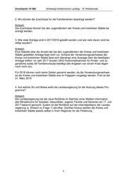 Drucksache 19/ 860 Schleswig-Holsteinischer Landtag - 19. Wahlperiode 2. Wo können die Zuschüsse für die Familienferien beantragt werden? Antwort: Die Zuschüsse können bei den Jugendämtern der Kreise und kreisfreien Städte be- antragt werden. 3. Wie viele Anträge sind in 2017/2018 gestellt worden und wie viele davon sind be- willigt worden? Antwort: Eine Statistik über die Anzahl der bei den Jugendämtern der Kreise und kreisfreien Städte gestellten Anträge liegt nicht vor. Anhand der Verwendungsnachweise der Kreise und kreisfreien Städte lässt sich allerdings eine Aussage über die bewilligten Anträge treffen. Im Jahr 2017 wurden 2403 Ferienmaßnahmen für Kinder- und Ju- gendliche sowie 39 Familienurlaube bewilligt (die Angaben von einem Kreis liegen noch nicht vor). Für 2018 können noch keine Zahlen genannt werden, da die Verwendungsnachwei- se der Kreise und kreisfreien Städte erst im Folgejahr vorgelegt werden. Frist ist der 31. März 2019 4. Auf welche Art und Weise wirbt die Landesregierung für die Nutzung dieses Pro- gramms? Antwort: Die Landesregierung hat die neue Richtlinie im Rahmen einer Medien-Information des Ministeriums für Soziales, Gesundheit, Jugend, Familie und Senioren am 17. Juli 2017 bekannt gemacht. Zudem ist die Richtlinie auf der Internetpräsenz der Landes- regierung (s. Antwort zu Frage 1) abrufbar. Darüber hinaus werben die Kreise und kreisfreien Städte jeweils selbst in ihren Regionen für die Förderung. 2