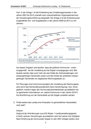 Drucksache 18/3037 Schleswig-Holsteinischer Landtag - 18. Wahlperiode men. In der Anlage 1 ist die Entwicklung des Umstellungsprozesses in den Jahren 2007 bis 2015 unterteilt nach unterschiedlichen Organisationsformen der Verwaltungsdurchführung dargestellt. Der Anlage 2 ist die Entwicklung bei ausgewählten Ein- und Ausgabearten in den Jahren 2009 bis 2014 zu ent- nehmen. Aus diesen Angaben wird deutlich, dass die größeren Kommunen - erwar- tungsgemäß - bei der Umstellung auf die Doppik vorangegangen sind. Mitt- lerweile wenden aber auch mehr als zwei Drittel der Amtsverwaltungen und amtsangehörigen Gemeinden sowie rund drei Viertel der amtsfreien kreisan- gehörigen Gemeinden ein doppisches Rechnungswesen an. Für Planungen einer Kommune bezüglich der Umstellung des Rechnungswe- sens kennt das Gemeindehaushaltsrecht keine Genehmigungs- bzw. Anzei- gepflicht. Insofern liegen den Kommunalaufsichtsbehörden grundsätzlich kei- ne gesicherten Informationen vor, welche Kommunen in den Jahren 2016 ff. ihre Buchführung von der Kameralistik auf die Doppik umstellen werden. 2. Findet seitens des Landes eine Evaluation im gemeindlichen Haushaltsbe- reich statt? Antwort: Aufgrund der Anforderungen aus § 62 Absatz 1 Landesverwaltungsgesetz (LVwG) verlieren Verordnungen grundsätzlich nach fünf Jahren ihre Gültigkeit. Nach Einführung der kommunalen Doppik im Jahr 2007 erfolgte insofern eine 2