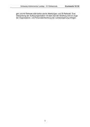 Schleswig-Holsteinischer Landtag - 18. Wahlperiode Drucksache 18/136 gen und 44 Referate statt bisher sechs Abteilungen und 39 Referate. Eine Überprüfung der Aufbauorganisation mit dem Ziel der Straffung wird im Zuge der Organisations- und Personalentwicklung der Landesregierung erfolgen. 3