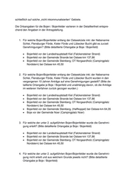 schließlich auf solche „nicht inkommunalisierten“ Gebiete. Die Ortsangaben für die Bojen / Bojenfelder variieren in der Detailliertheit entspre- chend den Angaben in der Antragstellung. 1. Für welche Bojen/Bojenfelder entlang der Ostseeküste inkl. der Nebenarme Schlei, Flensburger Förde, Kieler Förde und Lübecker Bucht gibt es zurzeit Genehmigungen? (Bitte detaillierte Ortangabe je Boje / Bojenfeld) Bojenfeld vor der Landeshauptstadt Kiel (Falckensteiner Strand) Bojenfeld vor der Gemeinde Strande bei Ostsee-km 137,86 Bojenfeld vor der Gemeinde Steinberg, OT Norgaardholz (Campingplatz Nordstern) bei Ostsee-km 45,50 2. Für welche Bojen/Bojenfelder entlang der Ostseeküste inkl. der Nebenarme Schlei, Flensburger Förde, Kieler Förde und Lübecker Bucht wurden in den vergangenen 10 Jahren Anträge auf eine Genehmigungen gestellt? (Bitte de- taillierte Ortangabe je Boje / Bojenfeld und unabhängig davon, ob die Anträge im weiteren Verfahren zurück gezogen wurden.) Bojenfeld vor der Landeshauptstadt Kiel (Falckensteiner Strand) Bojenfeld vor der Gemeinde Strande bei Ostsee-km 137,86 Bojenfeld vor der Gemeinde Steinberg, OT Norgaardholz (Campingplatz Nordstern) bei Ostsee-km 45,50 Bojenfeld vor der Gemeinde Steinberg, (Haffkoppel) bei Ostsee-km 64,35 Boje vor der Gemeinde Noer (Campingplatz Noer) 3. Für welche der unter 2. aufgeführten Bojen/Bojenfelder wurde die Genehmi- gung erteilt? (Bitte detaillierte Ortangabe je Boje / Bojenfeld) Bojenfeld vor der Landeshauptstadt Kiel (Falckensteiner Strand) Bojenfeld vor der Gemeinde Strande bei Ostsee-km 137,86 Bojenfeld vor der Gemeinde Steinberg, OT Norgaardholz (Campingplatz Nordstern) bei Ostsee-km 45,50 4. Für welche der unter 2. aufgeführten Bojen/Bojenfelder wurde die Genehmi- gung nicht erteilt und aus welchem Grunde jeweils nicht? (Bitte detaillierte Ortangabe je Boje / Bojenfeld)