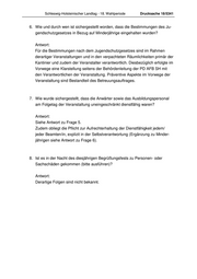 Schleswig-Holsteinischer Landtag - 18. Wahlperiode Drucksache 18/5341 6. Wie und durch wen ist sichergestellt worden, dass die Bestimmungen des Ju- gendschutzgesetzes in Bezug auf Minderjährige eingehalten wurden? Antwort: Für die Bestimmungen nach dem Jugendschutzgesetzes sind im Rahmen derartiger Veranstaltungen und in den verpachteten Räumlichkeiten primär der Kantinier und zudem der Veranstalter verantwortlich. Diesbezüglich erfolgte im Vorwege eine Klarstellung seitens der Behördenleitung der PD AFB SH mit den Verantwortlichen der Veranstaltung. Präventive Aspekte im Vorwege der Veranstaltung sind Bestandteil des Betreuungsauftrages. 7. Wie wurde sichergestellt, dass die Anwärter sowie das Ausbildungspersonal am Folgetag der Veranstaltung uneingeschränkt dienstfähig waren? Antwort: Siehe Antwort zu Frage 5. Zudem obliegt die Pflicht zur Aufrechterhaltung der Dienstfähigkeit jedem/ jeder Beamten/in, explizit in der Selbstverantwortung (Ergänzung zu Minder- jährigen siehe Antwort zu Frage 6). 8. Ist es in der Nacht des diesjährigen Begrüßungsfests zu Personen- oder Sachschäden gekommen (bitte ausführen)? Antwort: Derartige Folgen sind nicht bekannt.