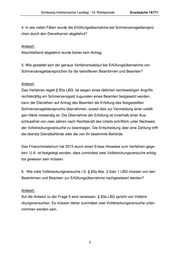Schleswig-Holsteinischer Landtag - 19. Wahlperiode Drucksache 19/771 4. In wie vielen Fällen wurde die Erfüllungsübernahme bei Schmerzensgeldansprü- chen durch den Dienstherren abgelehnt? Antwort: Abschließend abgelehnt wurde bisher kein Antrag. 5. Wie gestaltet sich der genaue Verfahrensablauf bei Erfüllungsübernahme von Schmerzensgeldansprüchen für die betroffenen Beamtinnen und Beamten? Antwort: Das Verfahren regelt § 83a LBG. Ist wegen eines tätlichen rechtswidrigen Angriffs rechtskräftig ein Schmerzensgeld zugunsten eines Beamten festgesetzt worden, kann der Dienstherr auf Antrag des Beamten die Erfüllung des festgestellten Schmerzensgeldanspruchs übernehmen, soweit dies zur Vermeidung einer unbilli- gen Härte notwendig ist. Die Übernahme der Erfüllung ist innerhalb einer Aus- schlussfrist von zwei Jahren nach Rechtskraft des Urteils schriftlich unter Nachweis der Vollstreckungsversuche zu beantragen. Die Entscheidung über eine Zahlung trifft die oberste Dienstbehörde oder die von ihr bestimmte Behörde. Das Finanzministerium hat 2015 durch einen Erlass Hinweise zum Verfahren gege- ben. U.A. ist festgelegt worden, dass zumindest zwei Vollstreckungsversuche erfolg- los gewesen sein müssen. 6. Wie viele Vollstreckungsversuche i.S. § 83a Abs. 3 Satz 1 LBG müssen von den Beamtinnen und Beamten zur Erfüllungsübernahme nachgewiesen werden? Antwort: Auf die Antwort zu der Frage 5 wird verwiesen. § 83a LBG spricht von Vollstre- ckungsversuchen. Es müssen daher zumindest zwei Vollstreckungsversuche unter- nommen worden sein. 3