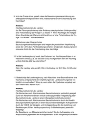 9. Ist in der Praxis sicher gestellt, dass die Baunutzungskostenschätzung pro- jektbegleitend fortgeschrieben wird, insbesondere vor der Entscheidung über Nachträge? Antwort: Hochbaumaßnahmen des Landes: Ja, Bei Planungsoptimierung oder Änderung des physischen Umfangs erfolgt eine Fortschreibung der Anlage 1 zu Muster 7. Wenn Nachträge die maßgeb- lichen Grundzüge der Planung nicht berühren, ist eine Fortschreibung der An- lage 1 zu Muster 7 nicht erforderlich. Maßnahmen des Küstenschutzes Baunutzungskostenschätzungen sind wegen der gesetzlichen Verpflichtung sowie der i.d.R. über Planfeststellungsverfahren erfolgenden Zulassung keine relevante Größe für die Entscheidung über Nachträge. 10. Ist die Landesregierung bereit, das Parlament vor Nachtragsaufträgen in er- heblichem Umfang (z.B. ab 500.000 Euro) unaufgefordert über den Nachtrag und die Gründe dafür zu unterrichten? Antwort: Nein. Der Landtag wird gemäß § 54 in Verbindung mit § 37 Abs. 6 LHO unter- richtet. 11. Beabsichtigt die Landesregierung, nach Abschluss einer Baumaßnahme eine Nachschau entsprechend der Empfehlungen des Landesrechnungshofs ver- bindlich vorzuschreiben? Wenn ja, wem sollen die Ergebnisse vorgelegt wer- den? Wenn nein, warum nicht? Antwort: Hochbaumaßnahmen des Landes: Die Nachschau nach Abschluss einer Baumaßnahme ist verbindlich geregelt. Durch ein Abnahmeverfahren wird die ordnungsgemäße Fertigstellung jeder Baumaßnahme des Landes in einem Übergabeprotokoll dokumentiert. Die Nachschau nach Abschluss einer Baumaßnahme ist durch die Gewähr- leistungsverpflichtungen der an einem Bauvorhaben beteiligten Auftragnehmer durch die VOB/B, der Vergabe- und Vertragsordnung für die Ausführung von Bauleistungen (früher: Verdingungsordnung für Bauleistungen) gesetzlich festgelegt. Zur Beseitigung von Mängelansprüchen besteht für den Auftraggeber eine Anspruchsfrist gegenüber den Auftragnehmern. Ist für Mängelansprüche keine