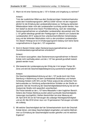 Drucksache 18/ 4367 Schleswig-Holsteinischer Landtag - 18. Wahlperiode 2. Wann ist mit einer Sanierung der L 137 in Ecklak und Umgebung zu rechnen? Antwort: Trotz der zusätzlichen Mittel aus dem Sondervermögen Verkehrsinfrastruktur sowie dem Investitionsprogramm „IMPULS 2030“ können mit den insgesamt jährlich für die Erhaltung des Landesstraßennetzes zur Verfügung stehenden Mittelansätzen leider nicht alle Landesstraßen kurzfristig saniert werden. Inso- fern bedarf es derzeit einer klaren Prioritätenreihung, nach der notwendige Sanierungsmaßnahmen an schadhaften Landesstraßen abzuwickeln sind. Die L 137 gehört allerdings gemäß den Festlegungen im „Bericht zum Zustand der Landesstraßen 2014“ aufgrund ihrer unterdurchschnittlichen Verkehrsbelas- tung und der fehlenden Netzfunktion nicht zu den prioritären Landesstraßen. Vor diesem Hintergrund ist im Erhaltungsprogramm bislang noch keine Sanie- rungsmaßnahme im Zuge der L 137 vorgesehen. 3. Sind im Bereich Ecklak neben Deckenerneuerungsmaßnahmen auch Grundinstandsetzungsmaßnahmen erforderlich? Antwort: Es ist davon auszugehen, dass Deckenerneuerungsmaßnahmen im Bereich Ecklak nicht nachhaltig wären und die L 137 hier generell grundhaft instand- gesetzt werden muss. 4. Wie bewertet die Landesregierung den Erfolg der 4 km langen Tempo 30- Zone und wird die Geschwindigkeitsbegrenzung ausreichend eingehalten? Antwort: Die Geschwindigkeitsbeschränkung auf der L 137 wurde durch den Kreis Steinburg in Abstimmung mit dem Landesbetrieb Straßenbau und Verkehr Schleswig-Holstein (LBV-SH) und der Polizei aufgrund des schlechten Fahr- bahnzustandes zur Verhütung außerordentlicher Schäden an der Straße an- geordnet. Seit der Anordnung der Geschwindigkeitsbeschränkung hat sich der Zustand der Straße nicht wesentlich verschlechtert. Die Polizei betreibt an der L 137 keine Messstelle in dem fraglichen Bereich. Seitens des Kreises Steinburg wurden jedoch punktuelle Geschwindigkeits- messungen durchgeführt. Hierbei überschritten bei einer Messung am 29. April 2016 30 von 62 Fahrzeugen die zulässige Höchstgeschwindigkeit und am 26. Mai 2016 fuhren neun von 19 gemessenen Fahrzeugen schneller als zulässig 5. Mit welcher Geschwindigkeit darf der Schwerlastverkehr durch die Ortschaft Ecklak fahren, wird diese Geschwindigkeit eingehalten und welche Maßnah- men zur Einhaltung der Geschwindigkeit wurden getroffen und mit welchem Ergebnis? 2