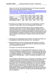Drucksache 18/5383 Schleswig-Holsteinischer Landtag - 18. Wahlperiode liegen noch nicht vor. Die Anzahl bezieht sich auf die Energie erzeugenden Anlagen, also die Blockheizkraftwerke (BHKW). https://www.bundesnetzagentur.de/cln_1412/DE/Sachgebiete/Elektrizitaetund Gas/Unternehmen_Institutionen/ErneuerbareEnergien/ZahlenDatenInformatio nen/zahlenunddaten-node.html#doc404532bodyText3 2010 2011 2012 2013 2014 2015 Anzahl k.A. k.A. 843 865 922 938 Leistung in MW 210 312 355,1 361,1 392,6 406,4 (Netto)Zubau in MW 49 68 8,6 6,9 8,7 9,9 3. Wie haben sich die Flächen für den Anbau von Energiepflanzen seit 2010 entwickelt? Soweit möglich, bitte nach Energiepflanzen aufschlüsseln. Auf Basis von fachlichen Abschätzungen ist davon auszugehen, dass in Schleswig-Holstein etwa 17 % der Landwirtschaftlichen Nutzfläche für den Anbau nachwachsender Rohstoffe und Energiepflanzen genutzt werden - (für die Biogaserzeugung, für die Biokraftstoffproduktion, feste Biomasse (Holz) für die energetische und stoffliche Verwertung und diverse nachwachsende Roh- stoffe für stoffliche Verwendungen). Statistisch werden diese Daten jedoch nicht erfasst. 4. Wie bewertet die Landesregierung die Probleme und Folgen des Anbaus von Energiepflanzen, Stichwort „Monokulturen“ bzw. „Vermaisung“? 5. Welche Maßnahmen hat die Landesregierung bisher ergriffen, um diesen Problemen zu begegnen und wie haben diese den Flächenanteil der jeweili- gen Energiepflanzen beeinflusst? Die Fragen 4 und 5 werden gemeinsam beantwortet. Der Substratanbau hat, wie der gesamte Biomasseanbau (für Lebens-, Fut- termittel, Energiepflanzen, stoffliche Nutzung) – insbesondere der Maisanbau – nachhaltig zu erfolgen. Gleichwohl gibt es in der landwirtschaftlichen Praxis noch Optimierungsbedarf, um den Maisanbau – ob nun als Futtermittel oder als Substrat für Biogasanlagen – umwelt- und gewässerverträglicher zu ge- stalten. Um die Probleme „Monokulturen“ bzw. „Vermaisung“ zu entschärfen, setzt die Landesregierung neben der erforderlichen Verschärfung der gesetzlichen Vorgaben (insbesondere Novelle der Düngeverordnung) und der konsequen- ten Umsetzung der einzuhaltenden Regelungen in der Praxis auf freiwillige Maßnahmen, wie z. B. der mit dem Bauernverband im Jahre 2013 vereinbar- ten Allianz für den Gewässerschutz. Im Rahmen dieser Allianz wurde eine Reihe von Maßnahmen (z. B. Anlage Gewässerrandstreifen; Einrichtung Nährstoffbörse; Ausbau Gewässerschutzberatung) zur Optimierung des Nähr- stoffmanagements und damit zur Verringerung der Nährstoffausträge verein- bart und umgesetzt. 2