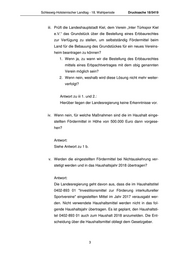 Schleswig-Holsteinischer Landtag - 18. Wahlperiode Drucksache 18/5419 iii. Prüft die Landeshauptstadt Kiel, dem Verein „Inter Türkspor Kiel e.V.“ das Grundstück über die Bestellung eines Erbbaurechtes zur Verfügung zu stellen, um selbstständig Fördermittel beim Land für die Bebauung des Grundstückes für ein neues Vereins- heim beantragen zu können? 1. Wenn ja, zu wann wir die Bestellung des Erbbaurechtes mittels eines Erbpachtvertrages mit dem obig genannten Verein möglich sein? 2. Wenn nein, weshalb wird diese Lösung nicht mehr weiter- verfolgt? Antwort zu iii 1. und 2.: Hierüber liegen der Landesregierung keine Erkenntnisse vor. iv. Wenn nein, für welche Maßnahmen sind die im Haushalt einge- stellten Fördermittel in Höhe von 500.000 Euro dann vorgese- hen? Antwort: Siehe Antwort zu 1 b. v. Werden die eingestellten Fördermittel bei Nichtauskehrung ver- stetigt werden und in das Haushaltsjahr 2018 übertragen? Antwort: Die Landesregierung geht davon aus, dass die im Haushaltstitel 0402-893 01 "Investitionsmittel zur Förderung interkultureller Sportvereine" eingestellten Mittel im Jahr 2017 verausgabt wer- den. Nicht verwendete Haushaltsmittel werden nicht in das fol- gende Haushaltsjahr übertragen. Es ist geplant, den Haushaltsti- tel 0402-893 01 auch zum Haushalt 2018 anzumelden. Die Ent- scheidung über die Haushaltsmittel obliegt dem Gesetzgeber. 3