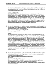 SCHLESWIG-HOLSTEINISCHER LANDTAG Drucksache 18/1703 18. Wahlperiode 31. März 2014 Kleine Anfrage des Abgeordneten Wolfgang Dudda (PIRATEN) und Antwort der Landesregierung – Ministerium für Soziales, Gesundheit, Familie und Gleichstellung Pflegeausbildung zukunftssicher machen Vorbemerkung des Fragestellers: Am 8.11.2012 hat der Sozialausschuss ein Maßnahmenpaket zur Sicherung und Stärkung der Pflegeausbildung beschlossen. Bezugnehmend auf die Drucksache 18/321 frage ich die Landesregierung: 1. a) Hat die Landesregierung die Möglichkeiten für eine schleswig-holsteinische Ausbildungsumlage in der Altenpflege oder eine gemeinsame Umlage aller Pfle- gefachprofessionen geprüft? Wenn ja, mit welchem Ergebnis? Wenn nein, warum nicht und wann wird diese Prüfung bzw. die Vorlage der Er- gebnisse erfolgen? b) Hat die Landesregierung vor einen entsprechenden Gesetzentwurf vorzule- gen? Wenn ja, wann? Wenn nein, warum nicht? Antwort zu Teilfrage a): Die Landesregierung hat 2012 die Universität Lübeck - Sektion Forschung und Lehre in der Pflege - mit der Durchführung einer wissenschaftlichen Untersu- chung beauftragt zur Beantwortung der Frage, ob die Voraussetzungen des § 25 Altenpflegegesetz (AltPflG) zur Einführung eines Umlageverfahrens in Schleswig- Holstein erfüllt sind. Im Februar 2014 hat die Universität Lübeck den Abschluss- bericht vorgelegt.