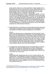 Drucksache 19/1644 Schleswig-Holsteinischer Landtag - 19. Wahlperiode queren werden, lässt sich nur schwer abschätzen. Fragen bezüglich der Ar- beitsbedingungen sowie des Einreiserechts und der Arbeitserlaubnisse im Zu- sammenhang mit dem Tunnelbau werden gemäß Artikel 16 und 17 des Staatsvertrages zwischen Deutschland und Dänemark über eine Feste Fehmarnbeltquerung vom 3. September 2008 geregelt. Nach der Inbetriebnahme des Tunnels – voraussichtlich 2028/29 – ist mit ei- ner erhöhten Durchlässigkeit der beiden Arbeitsmärkte und somit einer allge- meinen Zunahme der Grenzpendlerzahlen zu rechnen. Die für das Planungs- 1 verfahren zugrundeliegende Studie prognostiziert auf der „Vogelfluglinie“ für das gesamte Jahr 2030 775.000 Tagespendler (Arbeit/Ausbildung), das ent- spräche ca. 3.500 pendelnden Personen, und 874.000 Wochenendpendler, das entspräche ca. 17.100 Personen. Für das Jahr 2011 sind die Ist-Zahlen 121.000 Tagespendler (ca. 550 pendelnde Personen) und 301.000 Wochen- endpendler (ca. 5.900 pendelnde Personen). 3. Welche Maßnahmen und Ressourcen werden angesichts dessen seitens der Landesregierung angedacht, konkret vorbereitet bzw. bereitgestellt, um ein reibungsloses und bürgerfreundliches Management sicherzustellen? Antwort: Aufgrund der Zeitspanne bis zur Inbetriebnahme des Fehmarnbelt-Tunnels gibt es noch keine abschließenden Beschlüsse zu konkreten Maßnahmen der Organisation der Pendlerberatung. Voraussichtlich werden barrierefreie Infor- mationsmöglichkeiten über das Internet eine zentrale Rolle in der Information der Bürgerinnen und Bürger, der Unternehmen oder auch Vereine zu Fragen des grenzüberschreitenden Austausches einnehmen. Die in diesem Bereich vom Regionskontor gemachten Erfahrungen werden in die Überlegungen hierzu einfließen. Wie sich der diesbezügliche Ressourcenbedarf zu gegebe- ner Zeit darstellt, lässt sich heute noch nicht abschätzen. 4. Ist angesichts der zentralen Bedeutung der Fehmarnbelt-Region für Schles- wig-Holstein ein Ausbau des Regionskontors der Region Sønderjylland- Schleswig, vorzugsweise auf die östliche Grenzregion Holstein/Sjælland- Lolland-Falster, seitens der Landesregierung angedacht bzw. konkret in Pla- nung? Wenn nein, warum nicht? Antwort: Gegenwärtig finden Überlegungen statt, wie und in welchem Rahmen das „Regionskontor“ (Geschäftsstelle der Region Sønderjylland-Schleswig“) mit Blick auf die vom „Infocenter Grenze/Grænse“ wahrgenommene Grenzpend- lerberatung und deren Ausweitung auf die Fehmarnbeltregion finanziell ge- stärkt werden kann, damit zu gegebener Zeit auch dort bedarfsgerecht Bera- tung ausgeübt werden kann. 1 ) Verkehrsprognose für eine Feste Fehmarnbeltquerung 2014 – Aktualisierung der FTC-Studie von 2002 für femern A/S 2016 (http://pfv.femern.de/media/1255/anlage_26_03_00_a_deckblatt_b.pdf). 2