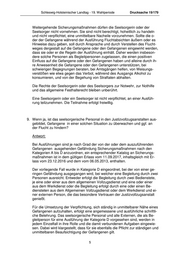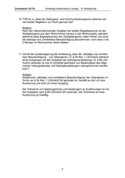Drucksache 19/179 Schleswig-Holsteinischer Landtag - 19. Wahlperiode 10. Trifft es zu, dass der Gefangene eine Kommunikationspanne zwischen sei- nen beiden Begleitern zur Flucht genutzt hat? Antwort: Nach den übereinstimmenden Angaben der beiden Begleitpersonen ist der Strafgefangene aus dem Wohnzimmer heraus in den Wohnungsflur getreten, während beide Begleitpersonen den Strafgefangenen reden hörten und ohne die ständige und unmittelbare Beaufsichtigung abzustimmen, noch etwa 2 bis 3 Minuten im Wohnzimmer sitzen blieben. 11. Vertritt die Landesregierung die Auffassung, dass die “ständige und unmittel- bare Beaufsichtigung“ von Gefangenen i.S. § 54 Abs. 1 LStrVollzG während eines Ausganges mit den Aufgaben der Gefangenenseelsorge i.S. § 88 LStr- VollzG vereinbar ist und im Einzelfall gleichsam von Bediensteten des Allge- meinen Vollzugsdienstes und Gefangenseelsorgern wahrgenommen werden kann? Antwort: Sobald eine „ständige und unmittelbare Beaufsichtigung“ der Gefangenen im Sinne von § 54 Abs. 1 LStVollzG SH gefordert ist, handelt es sich um eine Ausführung und nicht um einen Ausgang. Die Teilnahme von Seelsorgerinnen und Seelsorgern an Ausführungen ist mit den Aufgaben nach § 88 LStVollzG SH vereinbar. Die Teilnahme an einer Ausführung ist freiwillig. 6