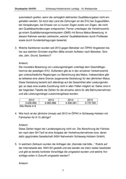 Drucksache 18/4701 Schleswig-Holsteinischer Landtag - 18. Wahlperiode automatisch greifen, wenn die vertraglich definierten Qualitätsvorgaben nicht ein- gehalten werden. So kürzt das Land die Zahlungen an die EVU bei Zugausfällen, bei Verspätungen, bei Einsatz von zu kurzen Zügen sowie von Zügen, die nicht den Qualitätsanforderungen entsprechen. Ferner unterliegen die Verkehrsverträ- ge einem Qualitätsmanagementsystem (QMS) mit Bonus-Malus-Bewertung. In diesem Rahmen werden zahlreiche „weiche“ Qualitätskriterien durch Profitester sowie durch Kundenbefragungen bewertet. 3. Welche Sanktionen wurden seit 2012 gegen Betreiber von ÖPNV-Angeboten bis- her aus welchen Gründen ergriffen (Bitte einzeln Auflisten nach Betreiber, Stre- cke, Jahr, Grund, Sanktion)? Antwort: Die monetäre Bewertung von Leistungsmängeln unterliegt dem Geschäftsge- heimnis der jeweiligen EVU. Außerdem gibt es in den einzelnen Verkehrsverträ- gen unterschiedliche Regelungen zur Berechnung des Malus. Insbesondere gibt es teilweise eine obere Grenze (sogenannte Deckelung) für den jährlichen Malus. Diese Deckelung bezieht sich allerdings auf die Gesamtheit aller Leistungsmän- gel, so dass eine exakte Zuordnung nicht in allen Fällen möglich ist. Daher sind in der folgenden Tabelle die Zahlen für die einzelne Jahre für alle Bahnunternehmen und alle Leistungsmängel zusammengefasst worden. 2012 2013 2014 2015 3.028.856 4.063.986 4.490.081 5.737.591 Alle Werte in € 4. Wie hoch ist der jährliche Umsatz seit 2012 im ÖPNV in Schleswig-Holstein mit Fahrkarten für 6-15 Jährige? Antwort: Diese Zahlen liegen der Landesregierung nicht vor. Die Abrechnung der Fahrkar- ten nach dem SH-Tarif ist eine Aufgabe der Verkehrsunternehmen bzw. deren dafür gegründete Gesellschaft (NSH Nahverkehr Schleswig-Holstein GmbH). 5. In welchem Zeitraum wurden die Anfragen der „Kannste mal bitte...“ Rubrik auf der Internetseite des NAH.SH gestellt und wie werden sie intern weiter bearbeitet und gibt es bereits konkrete Vorschläge die umgesetzt wurden und welche Vor- schläge sollen in Zukunft umgesetzt werden? Antwort: 2