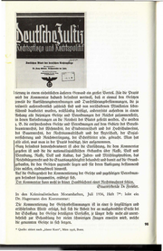 Sittliche Erziehung zur Achtung der gottgegebenen Naturgesetze morbebingung jeber erfolgreid)en ~ro~ unb ffiaffenvflege ift eine entfpred)enbe @runb~aftung bes ein~e(nen molfsgenoffen au feinem [5o[f. :Viefe @runbl)a(tung fann nur burd) fittlid)e ~r~iel)ung jebes einaeinen monsgenoffen ~u ed)ter moits~ gemeinfd)aft unb ~ur ~d)tung ber gottgewollten unb gottgegebenen maturgefei2e l)erbeigefül)rt werben. Seite 8 ... und die gottgewollte organische Lebensordnung :Die ffied)ts~ unb ®taatsorbnung bes :Dritten ffieid)es foll mit ben ~ebensgefet2en, ben für Jtörper, @eiff: unb ®eele bes beutfd)en OO?enfd)en ewig geltenben matur~ gefe~en roieber in ~inflang gebracl)t werben. ~6 gel)t a{fo bei ber t>ö[fifd)en unb ftaatlid)en meuotbnung un ferer <Iage um nicl)t mel)r unb nid)t weniger als um bte [Bieberanerfennung unb m3ieberl)erflellung ber im tiefflen ®inne gottgewollten organifd)en ~ebensorbnung im beutfcl)en [5olfs~ unb ®taatsfeben. Seite 9 :Die ~rfenntnis t>O!\ ber Q)~beutung ).)Oll ~Iut unb ffiaffe für moif unb ®taat gel)ört au ben wefentlicl)ff:en Q3aufleinen ber nationalfoaialiflifcl)en m3eitanfcl)auung. miut unb ffiaffe geff:alten Iet}tlid) baß nationalfo~ialiflifcl)e [Bert~ unb @efcl)icl)ts~ bilb. ·:Dabei finb bie ~egtiffe Q3[ut unb ffiaffe nid)t nur ~orfd)ungsergebniffe ber mobernen maturwiffenfcl)aften, fonbern fie finb in erfler ~inie @runbelemente ber roeftanfd)aufid)en Uber3eugung. Seite 12 :Das raffifd)e ::t>enfen bes mationalfoaiaiismus bebeutet ferner eine ~bfel)r t>on bem Iiberaliff:ifd)en ßJrunbfai}, t>on ber ®Ieüf)l)eit aller imenfcl)en. molf unb ®taat fönnen nur gebeil)en, wenn bie heften Jträfte fü~ren unb wenn fie ff:arf genug finb, um fü~ren 3u fönnen unb fid) in ber ~ü~rung au l)alten. ~ü~rertum aber fef2t beflimmte ~igenfd)aften ).)oraus, bie nun einmal nid)t bei allen imenfcl)en in gieid)er m3eife t>or~anben finb. ~us bem ffiaffegebanfen folgt fo aroangsläuflg ber ~ü~rergebanfe. :Ver t>ölfifd)e ®taat mu13 alfo notroenbig ein ~ül)rerflaat fein. Seite 13 ::Da baß Subentum in feinem ~Iute unb innerfien [ßefen nad) bem :Veutfd)tum artfremb ifi, finb ®pannungen aroifd)en beiben mölfern bie notroenbige ~o(ge. :Die jebes ffiaffengefül)ls ettnangeinben t>ergangenen Sa~rae~nte glaubten, biefe ®pannungen burd) eine wal)Uofe mermifd)ung unb geiftige ~nnäl)erung oefeh tigen au fönnen. ~n ®irffid)feit bewirfte bie ~Iutmifd)ung awifd)en Suben unb :Veutfd)en nur eine Ubertragung ber ®pannungen aud) in ben OO?ifd)Iing unb ge~ fä~rbete augleid) bie ffiein~eit bes beutfd)en mrutes unb bie ~nflinftfid)erl)eit bes mortes . • . :Die :5uben müffen fid) bamit abfinben, ba13 il)r ~intlu6 auf bie @eflaltung bes beutfd)en ~ebens ein für allemal t>orbei ifl. ::Das beutfd)e [Soff münfd)t, fein ~Iut unb feine Jtultur rein unb eigen ~u er~aften. ~Ud) bie mirtfd)aftlid)e ~etätigung ifl bem Suben im ffial)men ber ®efe{2e ungeflört geroäl)rleiflet. Seite 15 :Die ~äl)i~fett, ~räger eines öffentlid)en ~mtes, ~r~t, ffied)tsanroaft, ~atent~ anmalt, ®teuerberater ufro. ~u werben, ben beutfcl)en @runb unb Q3oben als ln Poliakov-Wulf: "Das Dritte Reich und seine Diener" sind auf den Seiten 303 bis 306 unc;f 100 309 die Seiten 14-19 des Kommentars Stuckart/Giobke abgedruckt