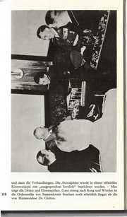 ' 4 - , rtr' ;r '* t 'e.u . 6 0 -• I j,, • und dann die Verhandlungen. Die Atmosphäre würde in einem offiziellen Kommunique mit "ausgesprochen herzlich" bezeichnet werden. - Man trägt alle Orden und Ehrenzeichen. Ganz streng nach Rang und Würden ist 215 die Ordensreihe von Staatssekretär Stuckart noch erheblich länger als die von Ministerialrat Dr. Globke. ,