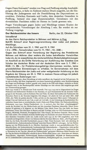 Gegen Franz Karmasin * werden von Prag und Preßburg ständig Anschuldi- gungen erhoben, er habe im Kabinett starken Druck ausgeübt, um die E in- führung der Judengesetze und die Durchführung der D eportationen zu erreichen. Zwischen Karmasin und Ludin, dem deutschen Gesandten in Preßburg, bestand eine enge Zusammenarbeit. Gemeinsam mit den slowakischen Faschisten sollen sie Herren im Lande gewesen sein. Prager Verordnungen gegen Juden und Mischlinge müssen Kopien der entsprechenden Verordnungen der Abteilung I sein. Ihr werden sie zur Prüfung vorgelegt. Der Reichsminister des lnnern Berlin, den 22. Oktober 1941 Schnellbrief An den Herrn Reichsprotektor in Böhmen und Mähren in Prag Betrifft: Entwurf einer Regierungsverordnung über Juden und jüdische Misch I inge. A uf die Schreiben vom 31. 1. 1941 und 19. 9. 1941 I 3 b- 3996- Fernschreiben vom 13. 11. 1941 - Nr. 2580- Gegen den Entwurf einer Verordnung der Regierung des Protektorats Böhmen und Mähren über weitere die Juden betreffenden Vorschriften habe ich, da im wesentlichen die reichsrechtlichen Blutschutzbestimmungen im Anschluß an die Dritte Verordnung zur Ausführung des Gesetzes zum Schutze des deutschen Blutes und der deutschen Ehre vom 5. 7. 1941 - RGBI. I S. 384 - für Protektoratsangehörige übernommen werden, keine grundsätzlichen Einwendungen zu erheben. Im Einvernehmen mit dem Herrn Reichsminister der Justiz und unter weitgehender Anlehnung an das Ergebnis der Sitzung am 20. 2. 1941 in meinem Hause schlage ich jedoch nachstehende Änderungen vor: * Karmasin behauptet, diese D arstellung sei nicht zutreffend, das Gegenteil sei der Fall gewesen. Es ist sehr zu hoffen, daß diese Angelegenheit von einem Staatsanwalt grün<}licb, unter Berücksichtigung der Prager und Preßburger Archive, geprüft wird, damit in der CSR nicht länger, vielleicht zu Recht, behauptet wird, in der Bundesrepublik würden Schuldige nur sehr schwer oder möglichst gar nicht zur Verantwortung gezogen. Nach 1945 wurde er in absentia zum Tode verurteilt. Von 1935- 1939 war er Abgeordneter im Frager Parlament und Stellvertreter Henleins in der Slowakei, ab 1938 Staatssekretär für die deutsche Volks- gruppe in der Slowakei, auch im Kabinett Tiso und Tuka. Zu dieser Zeit mußten die Funktionäre der D eutschen Partei in der Slowakei folgenden Eid ablegen: Ich schwöre bei Gott und meiner Ehre Ado/j Hit/er, dem Fiihrer du geeinten deutschen Volkes, und dem von ihm eingesetzten Fiihrer unserer Volksgruppe un- bedingte Trerte 11nd Gehorsam bis z11m Tode, so wahr mir Gott helfe. An der Gründung des faschistischen Slo- wakischen Staates hatte er entscheidenden Anteil. (Siehe auch Walter Hofer: Der Nationalsozialismus. ·D okumente 1933-1945, Fiseber-Taschenbuch 171, S. 2.2.0/2. 2.1). , Zur Zeit ihrer "Unabhängigkeit" wurde die Slowakei von der Hlinka-Garde und den deutschen Faschisten beherrscht. Dieser slowa- kischen SS gehörten z. B. folgende an : die Minister T uka, Mach, Franz Tiso (der N effe des Staats- präsidenten; Franz Tiso lebt heute in Bayern und hält Vorträge, auch vor CSU-Funktionärsversamm- lungen), Medritzki, Pruzinski, Propaganda-Chef T ido Gaspar, der Berliner Gesandte Matus Cemak und viele andere. Der erwähnte deutsche Einfluß ging von Karmasin mit seiner Deutschen Partei und dem deutschen Gesandten Ludin aus. Ludin wurde nach 1945 an die CSR ausgeliefert, zum Tode verurteilt und hingerichtet. (Ernst von Salomon hält ihn für einen Märtyrer. Siehe: "Der Fragebogen,'~ Seite 654 bis Ende, Rowohlt-Taschenbuch 419-421.) Dipl. Pranz Karmasin hielt sich jahrelang als Journalist bei der " Sudetendeutschen Zeitung" unter dem Namen DIBAK verborgen. Auf der Herbst- tagung 1957 des Witikobundes (8.-ro. O ktober, Starnberg) wurde er zum geschäftsführenden Vor- sitzenden dieser - die Sudetendeutsche Landsmannschaft beherrschenden - Organisation vieler großer und einflußreicher sudetendeutscher Nazis gewählt. Diese am 9· 11. 47 gegründete O rganisation (der 9· November ist der Tag des " Marsch zur Feldherrnhalle" genannten Münchner H itler-Putscbes und der Tag der Reichs-Kristallnacht) schreibt in ihrem Witiko-Brief Januar 1960 : Heute haben wir Minister, 19 Staatssekretäre, Abgeordnete, Parteivorsitzende, Bundesvorstandsmitglieder, Mitglieder der Bundesversammlung der SL (Sudetendeut.rchen Landsmannschaft ) , Chef-Redaktertre, Zeitrmgsherarugeber usw., in unseren Reihen. I
