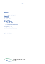 – 27 – Impressum: Regierungspräsidium Gießen Abteilung VII Dezernat 74 Lilienthalstraße 2 35394 Gießen Tel.: (0641) 7961-0 Fax: (0641) 303-2197 E-Mail: poststelle@rpgi.hessen.de www.rp-giessen.de www.facebook.com/rp.giessen Stand: Februar 2019