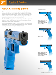 Training & Practice Safe Action Pistols ® GLOCK Training pistols Available models: Taking training to the next level requires more than just paper targets and an hour at the range. With situations and engage- ments becoming more complex, modern law enforcement and military units use Force-on-Force training to give their officers and soldiers the training they need to succeed. The GLOCK Training pistols were developed for the purpose of enabling reality-based tactical operations’ training with colour G17T Gen5 FX/FOF marking or plastic bullet ammunition. Also available as: G17T Gen4 FX/FOF GLOCK offers a wide range of Training tools to help customers G17T FX/FOF prepare for the real world while maintaining the same handling and ergonomics as the regular GLOCK pistols. G17T UTM G19T Gen5 FX/FOF Also available as: G19T Gen4 FX/FOF G19T FX/FOF G19T UTM 52 GLOCK BUYER'S GUIDE 2019