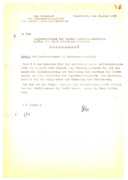 D er P r äs i den t En ~wu.rf des Landesredlnun~hofs Düsseldorf , den 20 . des Landes Nordrhein -W estfalcn y:A . (H . l o . 49 1 . Ver mer k . Der Stadt kämmer er , ·rer r Dr . Hans G 1 o b k e - Besoldung grup)e B 7 ~ de r Reichsbesoldungsor dnung , ist mit Kabinetbescbl' de r Regierung des Landes Nordrhein- west falen ab 1 .10 .1949 zum Vi zepr äs i dent beim Landesrechnungshof des Landes Nordrhein- Wes t f len b erufen worden • .Auf .oi tten des Herr n 1.ini s ter pr äs i denten des ~andes Nordrhein- WestfElen hat ihn der Her r Präsident des Landes r echnungoh f des Landes Nordrhein- Westfalen vorübergehend zum ~u deskanzlerafut in Bonn abgeordnet . ( 2. ~n VP . /H. \ Besoldung) z . Hd. von Perrn Insp . beim Landesrechnungshof Gaupp Kr e f e l d ~(c..) J • ,bt J vy ~~· Herr Vizepräsi dent, Dr . Hans G 1 o b k e, geboren om 10 . 9 . 1898 , ist mit 1.10 .1949 an den Landesrechnungshof des Lande Nordr~e in-we e tfalen beruten worden und in die Besoldungsgruppe 7 a der Re ichsbesoldungsordnung B eingestuft worden . An ~ane tb~zUgen sind monatlich anzuwe is en (Brutt obezüge) Grnndgehal t : l 33:5 ,34, !Ir~ " ( ~ohnungsgeldzus ohuß 168,-- DM Kin~orzus ohlag 60 ,-- DM ( f i.tr 3 Kind er) Ministerialzulage 100 ,-- DM DienAtbeztige (Brutto) · 1 661 ·~4 DM -.:~=-·A~::-== Di e DienstbezUge sind cu! des Poet~ch eokkonto roln 64900 Dr . Eans Globke , Aschen , zu üb Prweisen . 3. .An die Amtskesse des Landesrechnungshofs Kr e f e 1 d .Abschrift (von 2) mi t der ßitte um ~nntnisnuhme . Die Ailltskess~ wird angewies~n , En berrn Vizepräs i dent Dr o ··ans G 1 o b k e die Dienstbezü"'e vom· 1.10 . 1949 ab n~ch o.er B1 solgungsgruppe 7 e Besolaun sordnu.. .e ..o zu zahlen . De r .7onnu .gr O"eld· ..:>