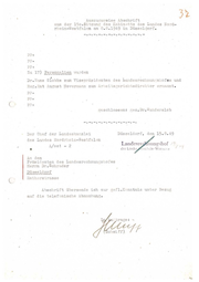 Der Fr üsidcnt Vüsse1 dorf , den 19 . Juli 1949 des La.ndosrechn ~m bsho:fs d e s Landes _, ordr tein-.,est:felen .1.\:n. dio 1. L~:mdeare gierung des Landes !. ordrhcin- ~to s·lifalon z . Hdn . de s 1Ierrn ;Jiniotcrpr _..sid ... n t eL · Dü s s e 1 d o r f Betr . : Stcl lenbcse t;zungcn im JJnndesrecb.nW1r;shof . l~aeh § 6 des Gesetzes über die .t:rricht lnG e ines LandesrcclL .tn(5o- ( hofs v om 6 . \.pril 1948 .(G taotz - und Vcrorän un ß b1att Ur . 18) er- nennt die .Londeorer;i.crun"; mit Zuo t; i.l'1I!lung des Landtags de_. -L :.i.oi - deJ1ter. W1U ÜiO • itc;lic-dcr U O ~ Jandesrechn UJGShofS • .1Jie .hlrnenm.m g 1 ori'ol._,t b oi d en Jiite;liedcrn auf Vorscl 1ag des J:lrärüdenton . Für das .\..mt dcD Viz ep r . :tden vcn d n un dcsreehntt! ' ·n1 o:rs r.c lo. ~.ß ich d c'J J tadtk .mmerer der J tadt Aac en, .cr t·n ,..:. Hans Globl:o, vor: . - 1 lmla.~;c L
