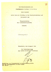~ründe für die Woraus ergibt Frühere und jetzige Stellungn ahme Liegt ~rnennung sich die Quali- Zugehör i gkeit zu des Entn . Aus- Zustim- fikation für politischen Parteien sch usses ggf . mung d. nunmehr in Aus- auch frühere Fin . Min . sicht gen ommene Entsch eidung vor Stellung d . Mil . Reg. >as weitreichen- Dr. G. hat durch Nicht Pg . Kat . V lt . le Aufgabdnge- seinen bi.sh erigen Entsche i dung >iet , das d . Ausbildungsgang, des jj)ntn . Aus- 1andesrechnungs- insb . durch seine sc l.,sses Aachen . LOf zu bewältigen mehr als 16- jäh- tat , macht neben rige Tätigl.:e it lem Präs . noch im Preuß . b zw. tinen stellv. Reichs inn enmi- Täsidenten er- nist erium einen ~orderlich umfassenden Über- blick über sämt- liche Verwaltungs- zweige erworben . ( Er wird allgemein als ein überaus befähigter und erfahren er Verwal- tungsfachmann be- urt eil~ , der auch durch seine jetz i ge Tätigkeit als Stadt- kämme r er von Aachen über die für die v orgesch lagene Stelle erforderlichen finanztech nischen Kenntnisse verfügt . )chulbildung Berufsausbildung Bezeichnung der f . Daueraufgaben a) Name und Art der zu besetzenden oder Aufgaben 1.~ Univ . Bonn u . Köln Pr ..tfung fieien Stelle vorübergeh ender > 1919- 21 b~ Ort der Prüfung n.d . Org. und Natur? ~ (- ~ferendar c Ergebnis Stellenplan d Datum der Prüfung Vizepras . Daueraufgaben a) Assessor d . Landesrech- ~5 ~~lin nun~shofes d:ll924 Dr . jur . Giessen maß11a cum laude : 1922 Düsseldorf , den 13 . Juli 1949 Der Ministerpr asident des Landes Nordrh ein- Westfalen gez .: Arnold Beglaubigt Riemer Reg . Kz·l . Ange stellte •