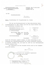 Ab s c h r i f t f/ Der "Präsident 1)Li.Rse1norf , l7 . Dez . l':749 des Lan(l.esr ecbnunrshofs des ~atherstr . 49a Landes ordrhein - 7estf~1en Fernruf : 10521 VA/T·i. 12 . 49 ( Ln das _._ii.L1des.-:a:n.z1 eramt in ~ o n n • Betr . : 1 Jbenstb czür-e für Vizeprn sit'ent 1)r . fl1ob\:e. 1·':i.r den zum . ;u_nc1es,ca ··1Z1 eramt in :0onn fl.llf'ebrcneten 1 err n V:. zeprÄ.- sic'enten .Or . Flans r1obke sinr1 f'ir C:ie o.1a.te ·ovenber un0 •ezember 1949 die Die!1Gtbezür·e :nit je 1 . 661 , 34 D. ' ins P.Samt also 3 . 322 , 68 D: C 1 U.l'Ch r: ·!.rnt.;;;1casse ces J"anr1 esrec 'mu..!J. . ::Jhois ordrhein- lest:falen in ~refe ld , . estvm.. 124 eza:Ut woreen , um deren ~rstattuntr auf' das r.-onto ··r . 1405 bei 0er Stadtsparkasse in :refe1d .(::"ebeten ".'ird . )je Petr8.fc für J,ohnF teuer unc das 1 otopfer - er1in siJld an das 1 "'innl1 amt ab ef;.l.hrt worden . rez . nr . 'chrader .-:.t schrift (