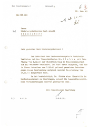 I[ / nr. ·1~1 ~ ~ 1 o b k a B o n n, deü 28 .12.194~ ·~ i ;:.u :_Jrf.iF..id ·~ll t de 9 rJand ~~-r.e~ ~l.c.~mgPJhof I!S d eo T..~!l!I·! 6S : o rt.h'll:J i n-·':.) e: t:~alen HtU'.l'l'l ( _______ :..r&.iaterpl·äsid ent A r n o l d _..._... , .i..e .J."!l ~ru t-..~.' 1.. i-..:4-ui ß ·i; o ~ •.i.a~.. 1·nt J):r . , ohr berei i;e ;,!l";.!...J:.;.;J.olic h. r::i ~ • ei1?.e t~.1~d \·d.o nich e.v.o <1am t\U Hie c~ Fr ·t·i c.JiJ'!arl,t.; :1 C o~u·cibt:n d u t fterrn l'v.ndee.knnzl<'re vom .~~ .litl~' ; r•~· '3 l 't;i ht , WRltut ti."- er den Inhol-r. lt 8r '\_1- bJ•~•..Jr:hU.fJ.f.;ClJ. V0!"1 17 . :i.2 . offcJ bar oin iiiof'vorotlt,ldnis ( ;:cn• HCl'I' =~~:üle~ ,ktwzl&l' hu·tte 3i.e e t:tbeten, d ie gegen nt(;llno ~ ~ i t ere ~eurlnubnng beat ~ httnden J!odenken zu.r ·fl1 ~l.u,t ~ ll c:·r, c"ty··olt:! r.~ i t, F)iner .'fu.r1tfl.hntA l:~e~no1• ~lt\t :Lgke: 1ie ~. i!~~ iJr..n tl cr;rcH h..-atmgnhof n ie:ht r;crocl~r et. we1'<1en l~;-.,;m, tJ0'!1 rlC'"'!J j.c:;. ~nt!gt\lt 1p; in den llienst 1 t'r D~ .anr~{;ieru.nr t•be!trtreten f'Olle. Der Herr '1undeekonl'.l. h~:t ob~7'..b C Vlie ich Ihr Einverständni s mit diesem Voraohl.eg angenommen. Ich habe 1nf.ol~edesa en f\\\(\h ko!nen ~.nt:w:ag eent olJ.t , EUle dem Dlel'\et deP. r~.~des Nora:ch.oin-Weatfnlen Et"..loZnGo heiö enJ ein oolober AJ'lt~ wUI"\lo smdem :1eoh den gftoet=-:lich ~n ncatimmnngen der Snhrii'tform bedürfen. tc1l bin dahe1• vorlf..iufig nooh lle Lunter des Lnndeo Uo~lr.-hEl in-Vi estfalon, beabsiohtig - 2 -