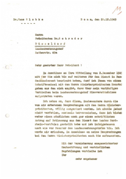 Dr. I~ans G l o b k a B o n n, d~n 2b.l2.l949 ... - ... ~- Rerm Präsidenten Dr.S o h r a d e r nus a ----------o e 1 o Lande ereohmln8ehof ~ f P..a·kherotr. 49a Sehr gea~ter Herr PräRident t ( 1m Ansohluos an Ihre VJtteilung vom 2.Dezembe~ 1945 mit der Bie miah bis auf woitores für den Dienet ic ~ deoknnzlcremt bGttrlaubt haben, ~~ ich Ihnen von einem ~ohriftweoheel mit dem Horrn N dnisterpräaidenten Kenntnj geben QQ8 4~ eich e~g1bt, d~e Ubtr mein vorlau!igea Vorbleiben beim Landesrechnungshot flieaverstUndnia&G at.t!'getreten war~.n. !eh n9bm9 Al11 d~C aillse, in&b&sond.ere durch die von m!r erbetenen Bcnproohu.rJSen llli t d&m Herrn lld.nis'te1"- I>r!!oid~nt~n, \"~llig ~uos;e:r-:...um.t we~en. Ich I:AUohte jedoo} nioht verfohlen, noc hmnlo hervor~nhebe~, dass 1oh bisb.4n ( r.eder oinen mUndliehen uooh gar einen sohr1ftlieben Antrag auf Entlru!mwg aus dem Diem t des Landes Nord- rhe1n-''1eetfalan gcotollt habe und ioh infolgedessen nach wie vor Be~t ~r ecc ~dosre c hnungahofes bin. Ioh werde _mir erlaub~n, im Ansohl~so an meine D&~~reohungen bei dem ~Ierrn ~in1at t3 rprttui<l.enten auch Sie au.fzUl\UOhen. ~!1 t der Versicherung auegeaeiehneter nocbschl!tz.ung tmd verbindl1ohen Emptehlung~n ?erbleibe ich Ibr oehr ergebener