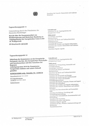Tagesordnungspunkt 11 Unterrichtung durch den Präsidenten des Deutschen Bundestages Bericht über die Zusammenarbeit von Bundesregierung und Deutschem Bundestag in Angelegenheiten der Europäischen Union in der 18. Wahlperiode BT-Drucksache 18/13150 Tagesordnungspunkt 12 Mitteilung der Kommission an das Europäische Parlament, den Rat, den Europäischen Wirtschafts- und Sozialausschuss und den Ausschuss der Regionen Arbeitsprogramm 2019 der Kommission Versprechen einlösen und unsere Zukunft gestalten KOM(2018)800 endg.: Ratsdok.-Nr. 13590/18 Ressortbericht AA 15.11.2018 EU-Folgedokumente: 14788/18 vom 26.11.2018 EuDoX-Dossier 19. Wahlperiode Tagesordnung 25. Sitzung Ausschuss für Umwelt, Naturschutz und nukleare Sicherheit Federführend: Ausschuss für die Angelegenheiten der Europäischen Union Mitberatend: Auswärtiger Ausschuss Innenausschuss Ausschuss für Recht und Verbraucherschutz Finanzausschuss Verteidigungsausschuss Ausschuss für Verkehr und digitale Infrastruktur Ausschuss für Umwelt, Naturschutz und nukleare Sicherheit Ausschuss Digitale Agenda Federführend: Ausschuss für die Angelegenheiten der Europäischen Union Mitberatend: Ausschuss für Wahlprüfung, Immunität und Geschäftsordnung Auswärtiger Ausschuss Ausschuss für Inneres und Heimat Sportausschuss Ausschuss für Recht und Verbraucherschutz Finanzausschuss Ausschuss für Wirtschaft und Energie Ausschuss für Ernährung und Landwirtschaft Ausschuss für Arbeit und Soziales Verteidigungsausschuss Ausschuss für Familie, Senioren, Frauen und Jugend Ausschuss für Gesundheit Ausschuss für Verkehr und digitale Infrastruktur Ausschuss für Umwelt, Naturschutz und nukleare Sicherheit Ausschuss für Menschenrechte und humanitäre Hilfe Ausschuss für Bildung, Forschung und Technikfolgenabschätzung Ausschuss für wirtschaftliche Zusammenarbeit und Entwicklung Ausschuss für Tourismus Ausschuss für Kultur und Medien Ausschuss Digitale Agenda Ausschuss für Bau, Wohnen, Stadtentwicklung und Kommunen Haushaltsausschuss Seite 8 von 11